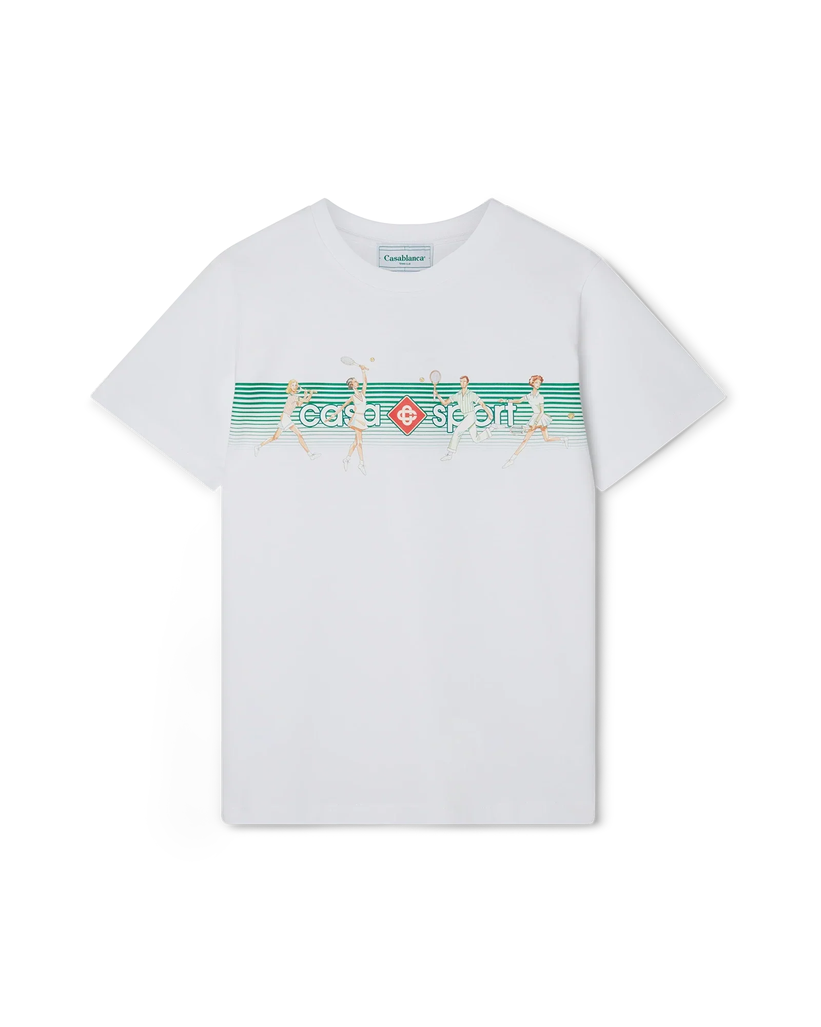The Playful Stripes screen-printed organic cotton t-shirt features seasonal artwork incorporating the house's signature tennis and Casa Sport iconography. Completed with a classic crewneck, short sleeves and Casablanca Paris branded label, designed for a relaxed fit.