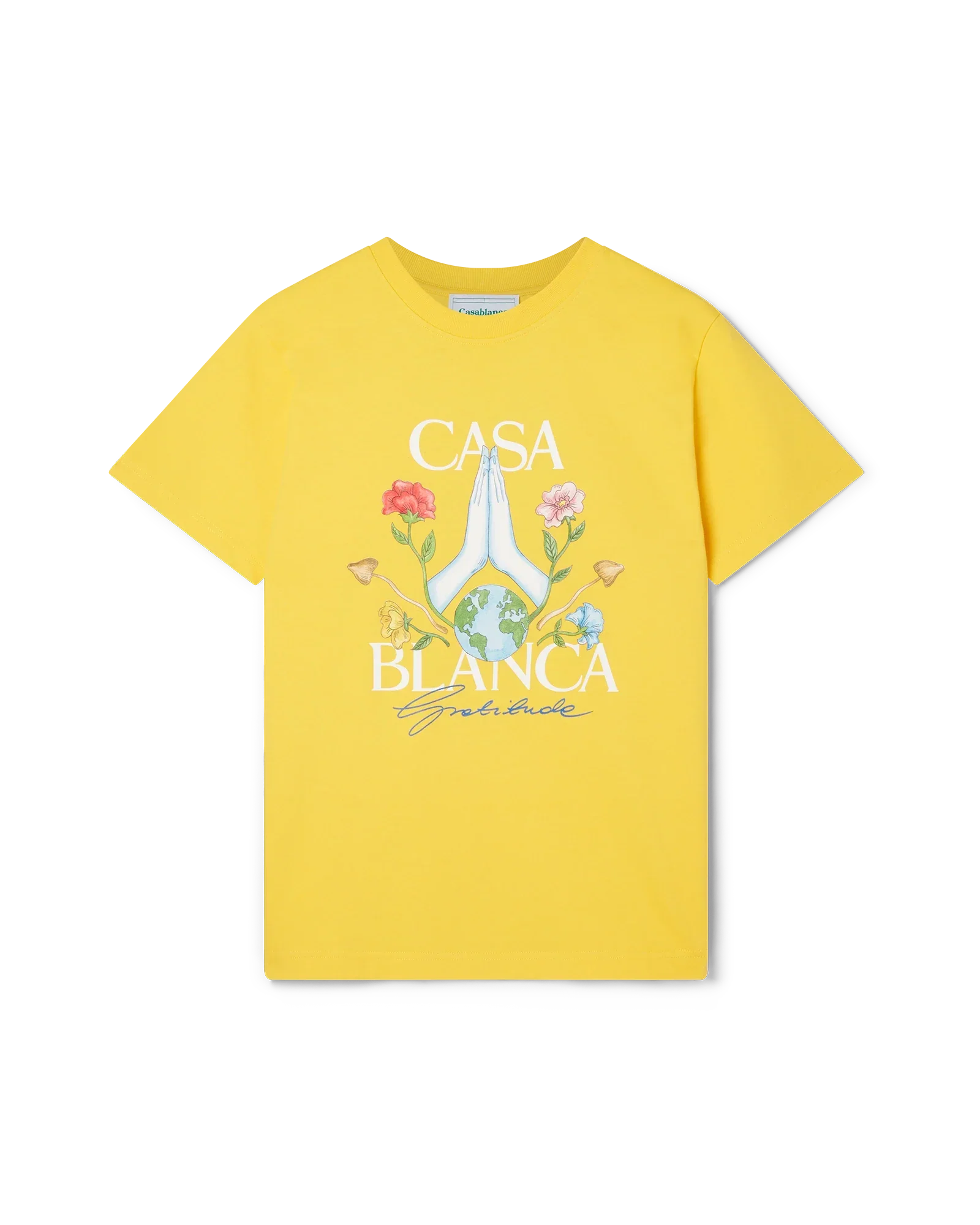 The Gratitude screen-printed organic cotton unisex t-shirt features seasonal artwork incorporating the house's signature iconography. Completed with a classic crewneck, short sleeves and Casablanca Paris branded label, designed for a relaxed fit.