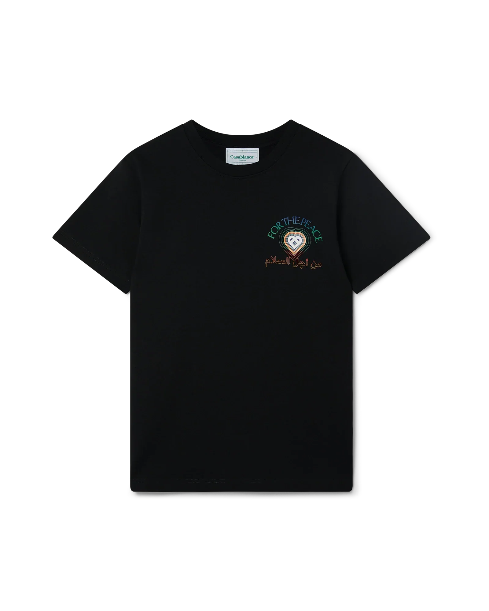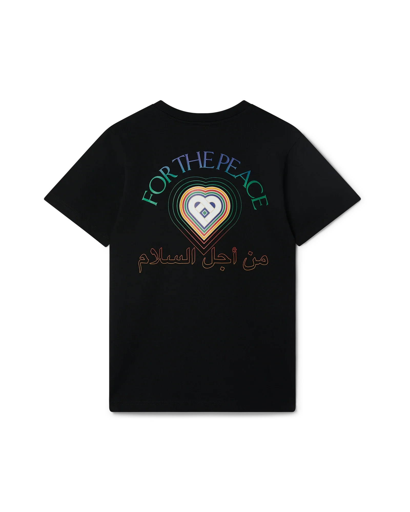 The For the Peace organic cotton black t-shirt features the seasonal artwork 'For the Peace', a testament to those fighting oppression of all kinds, and paving a better future for all. Completed with a classic crewneck, short sleeves and Casablanca Paris branded label, designed for a relaxed fit.