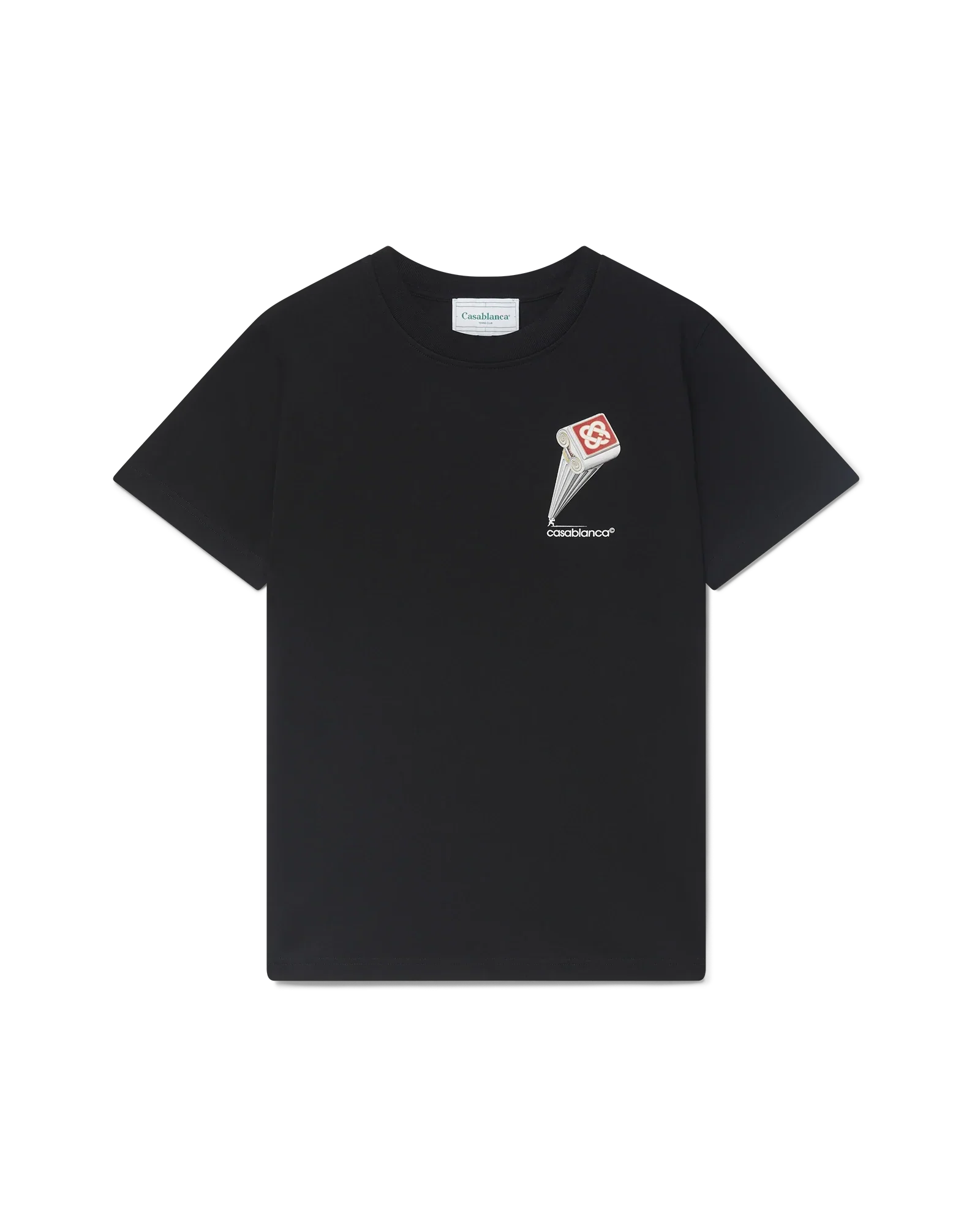 The leaning column t-shirt is a printed short-sleeved design crafted from an organic cotton fabric featuring the house's seasonal artwork inspired by a vintage movie poster and ancient Greece. Completed with a classic crew neck.