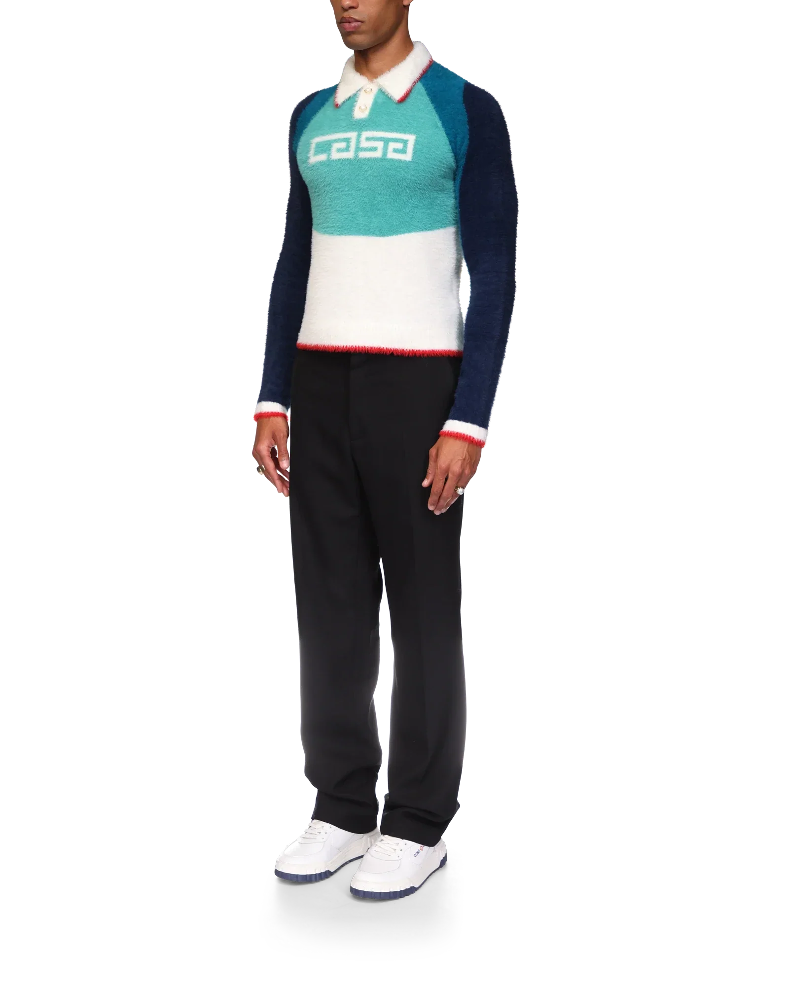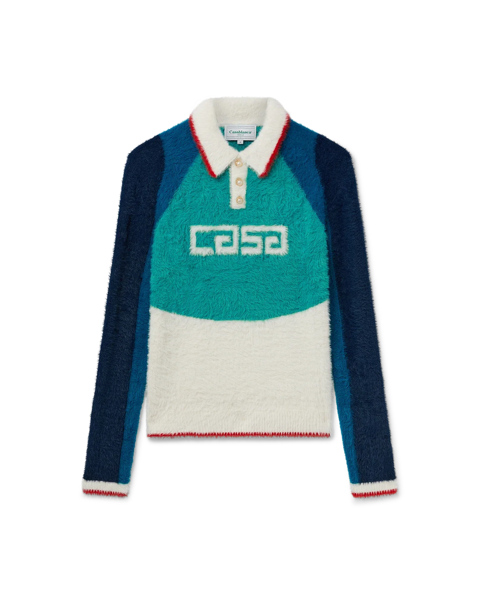The Casa Sport fluffy polo shirt is a long-sleeved design crafted from a fluffy knitted fabric. Completed with the house's signature gold rim pearl buttons, a rib collar, cuffs and hem with contrast edge detail, and Casa text across the chest written in a Greek-inspired Greek key style text.