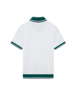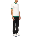 The Croquis De Tennis polo shirt is a short-sleeved design crafted from an organic cotton fabric, featuring the house's tennis-inspired seasonal artwork and Casablanca logo on the left chest. Completed with a contrast v-neck with a green, navy and white stripe collar, and contrast striped rib detail on the cuffs and hem.