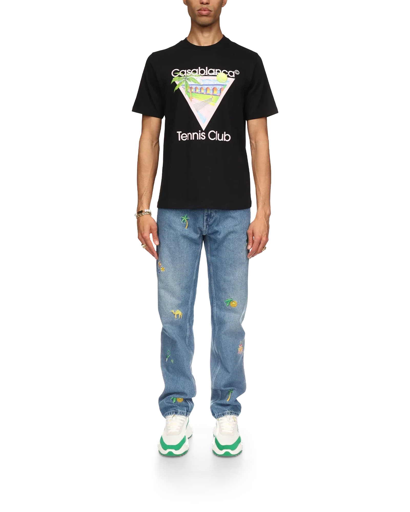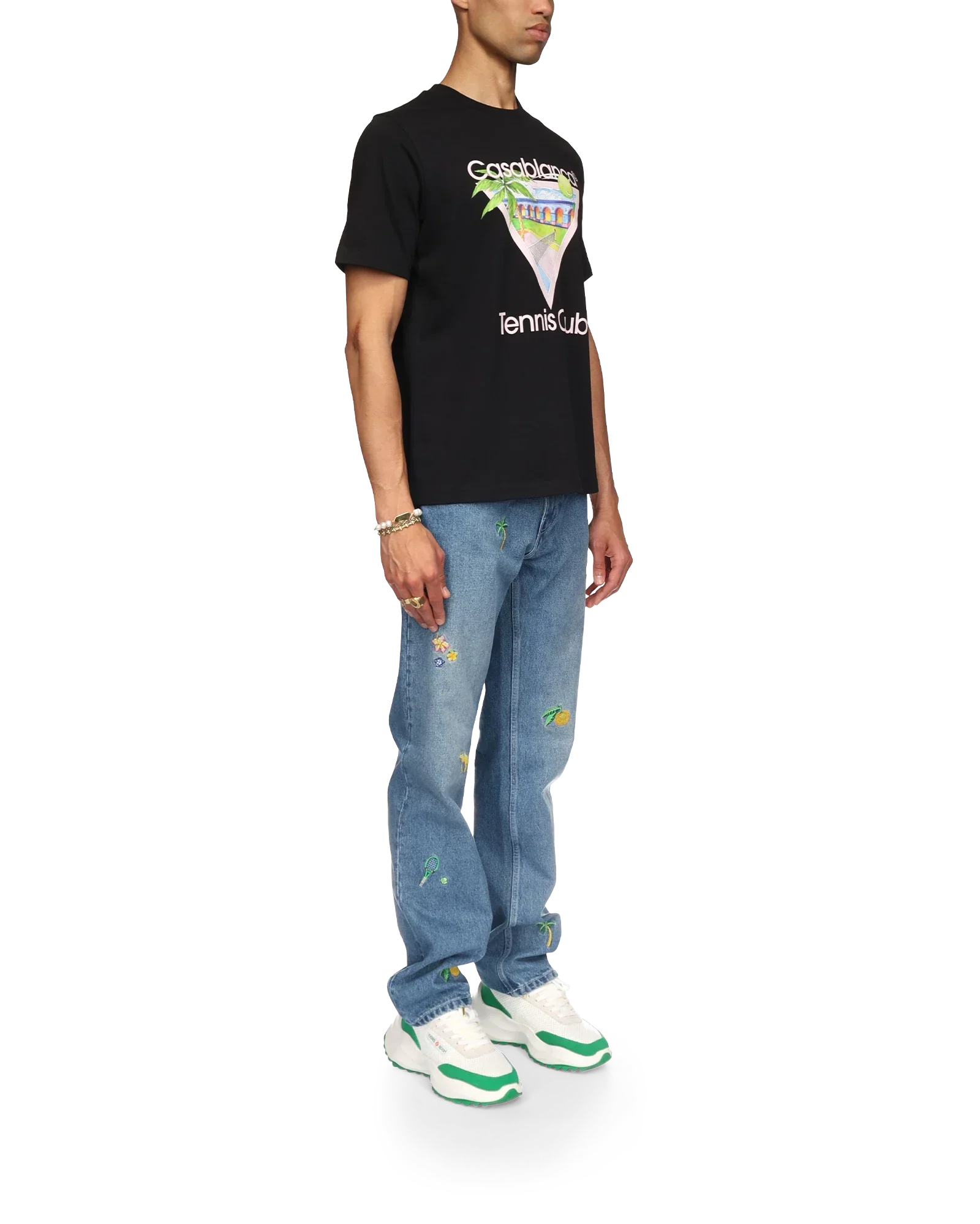 The Tennis Club Icon t-shirt is a printed design featuring the house's signature artwork reinterpreted for this season incorporating elements of tennis, nature and architecture. Crafted from pale-blue jersey, complete with a classic crewneck and Casablanca branded label.