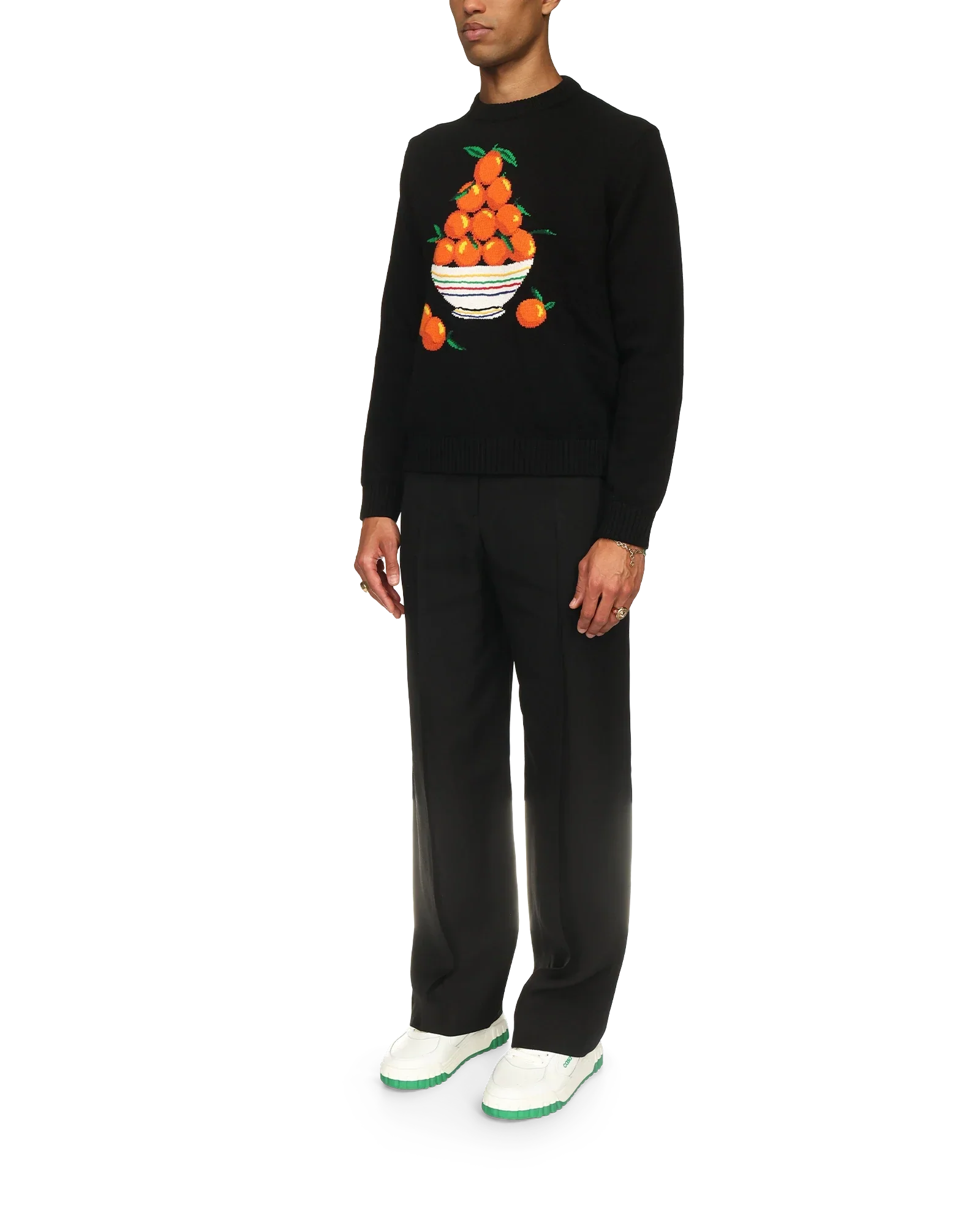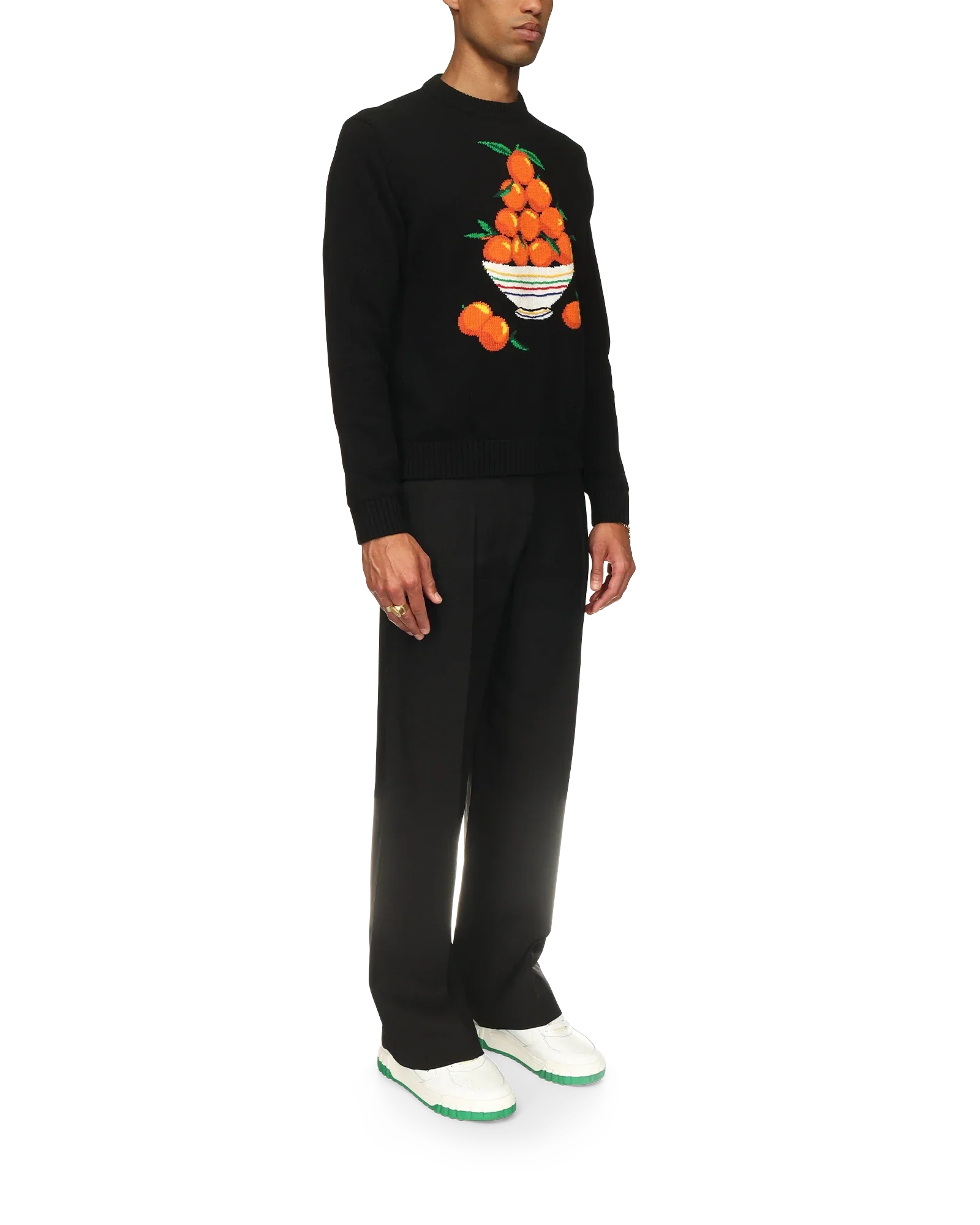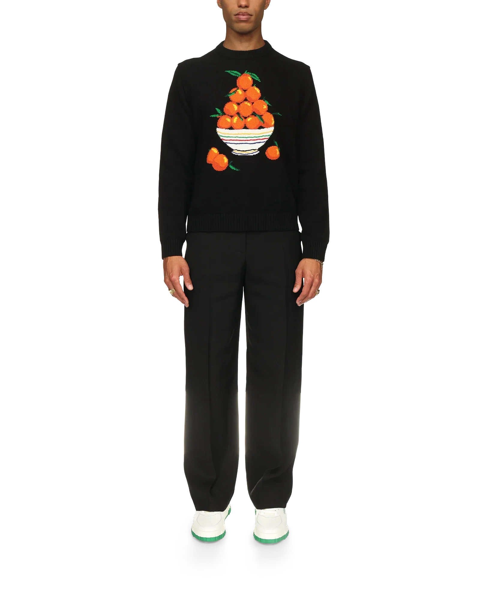 The Pyramide D'Oranges Jumper is crafted from 100% knitted cotton and features the house's iconographic orange pyramid artwork. Finished with ribbed collar, cuffs, hem and a Casablanca branded label.