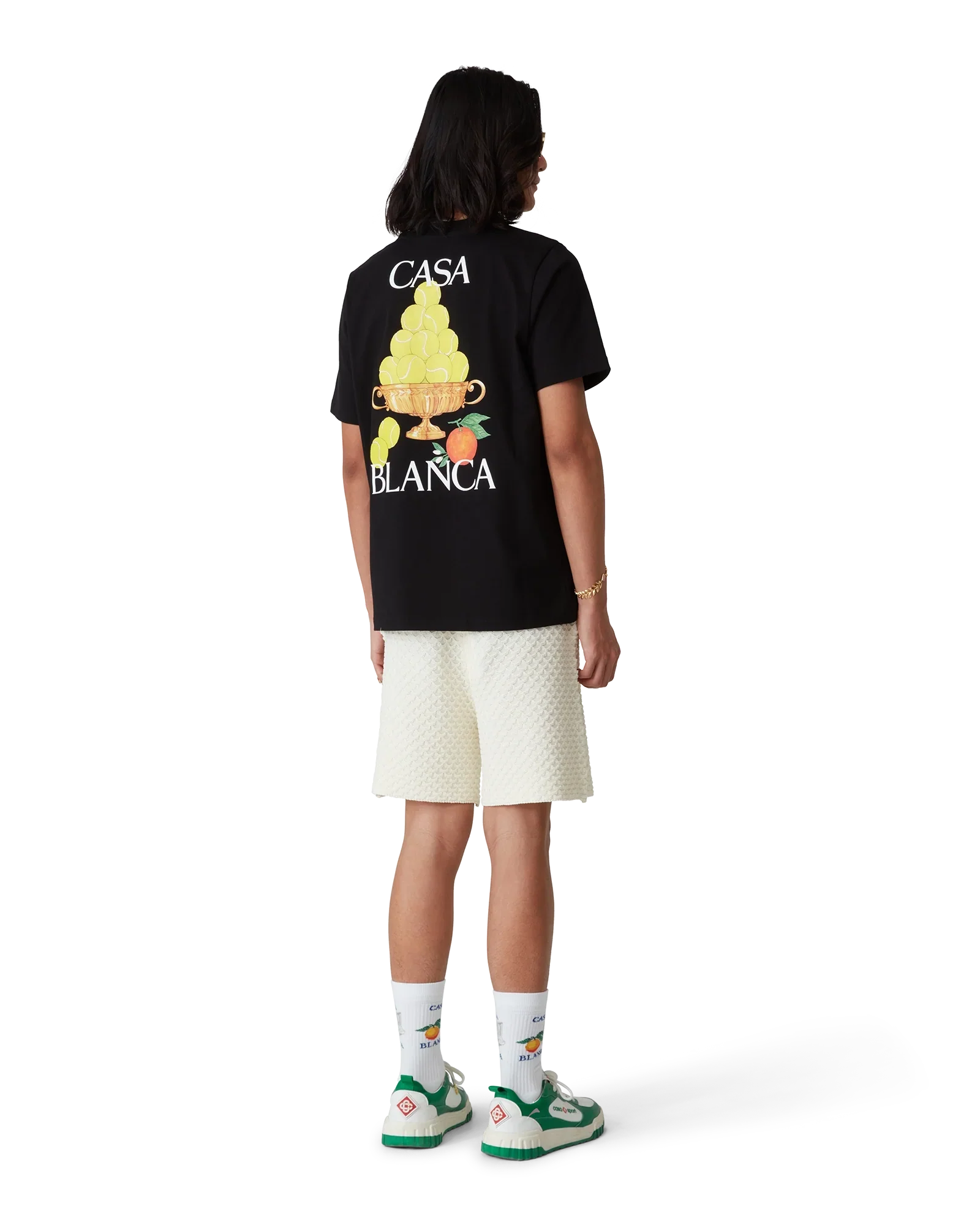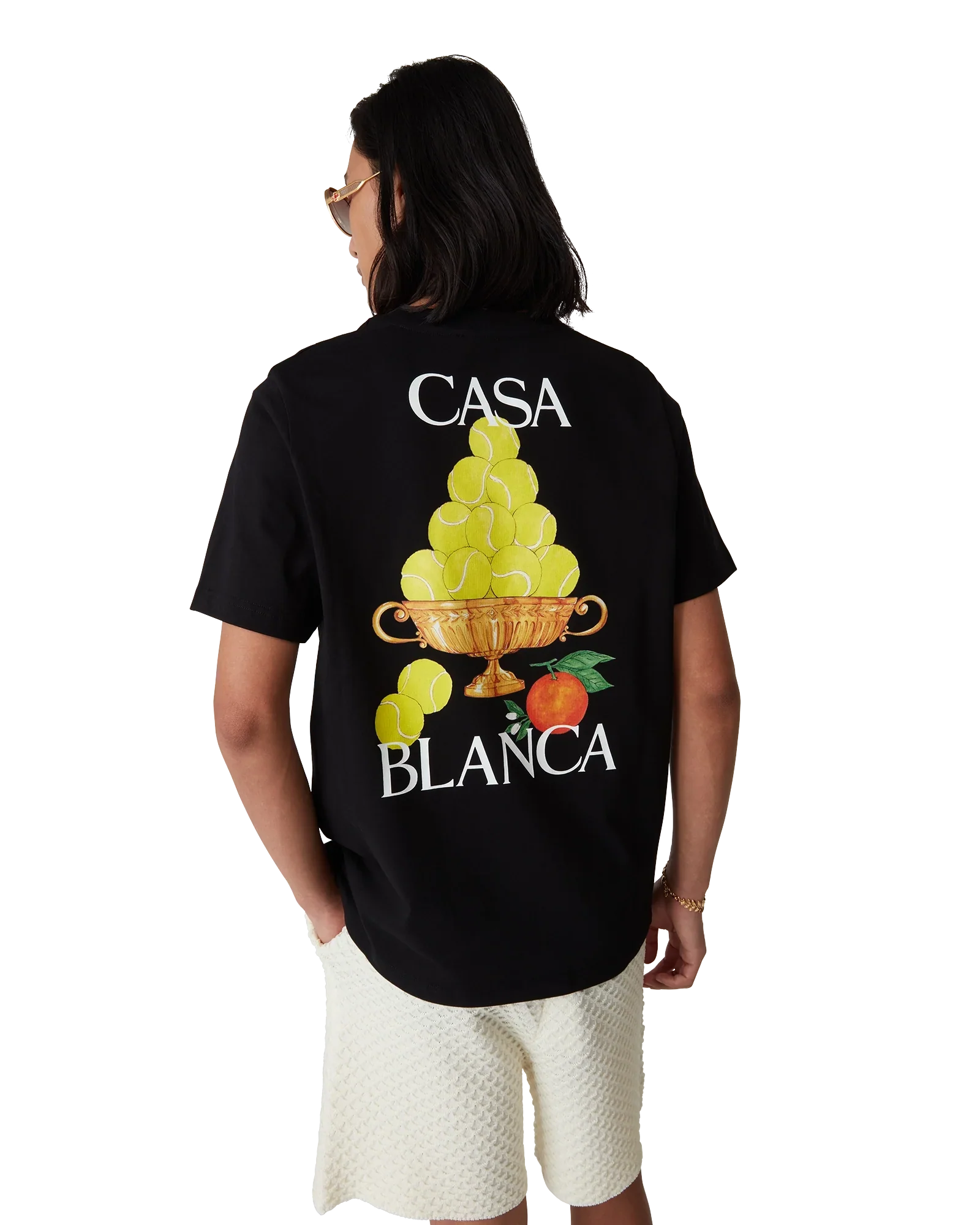 The Triomphe De Tennis t-shirt is a short-sleeve printed design and features the house's signature artwork incorporating orange and our tennis ball pyramid on the chest and repeated in a larger print on the back. Crafted from organic cotton fabric and completed with a classic crew neck.