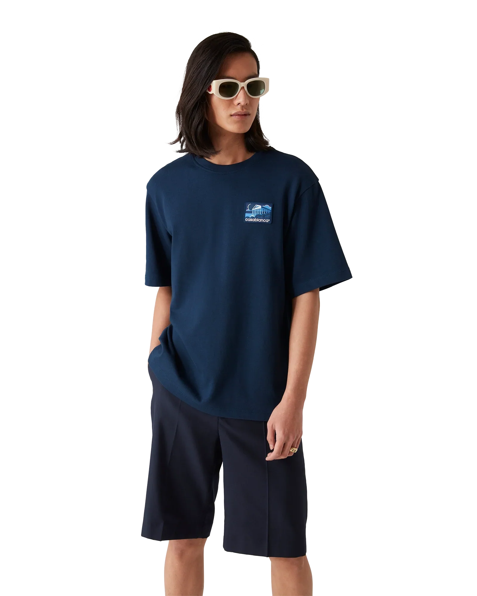 The Greek Temple t-shirt is a short-sleeved design crafted from organic cotton fabric. Completed with a rubber patch featuring the house's seasonal artwork inspired by the continued study of the classical beauty and contemporary allure of Ancient Greece, and a classic crew neck.