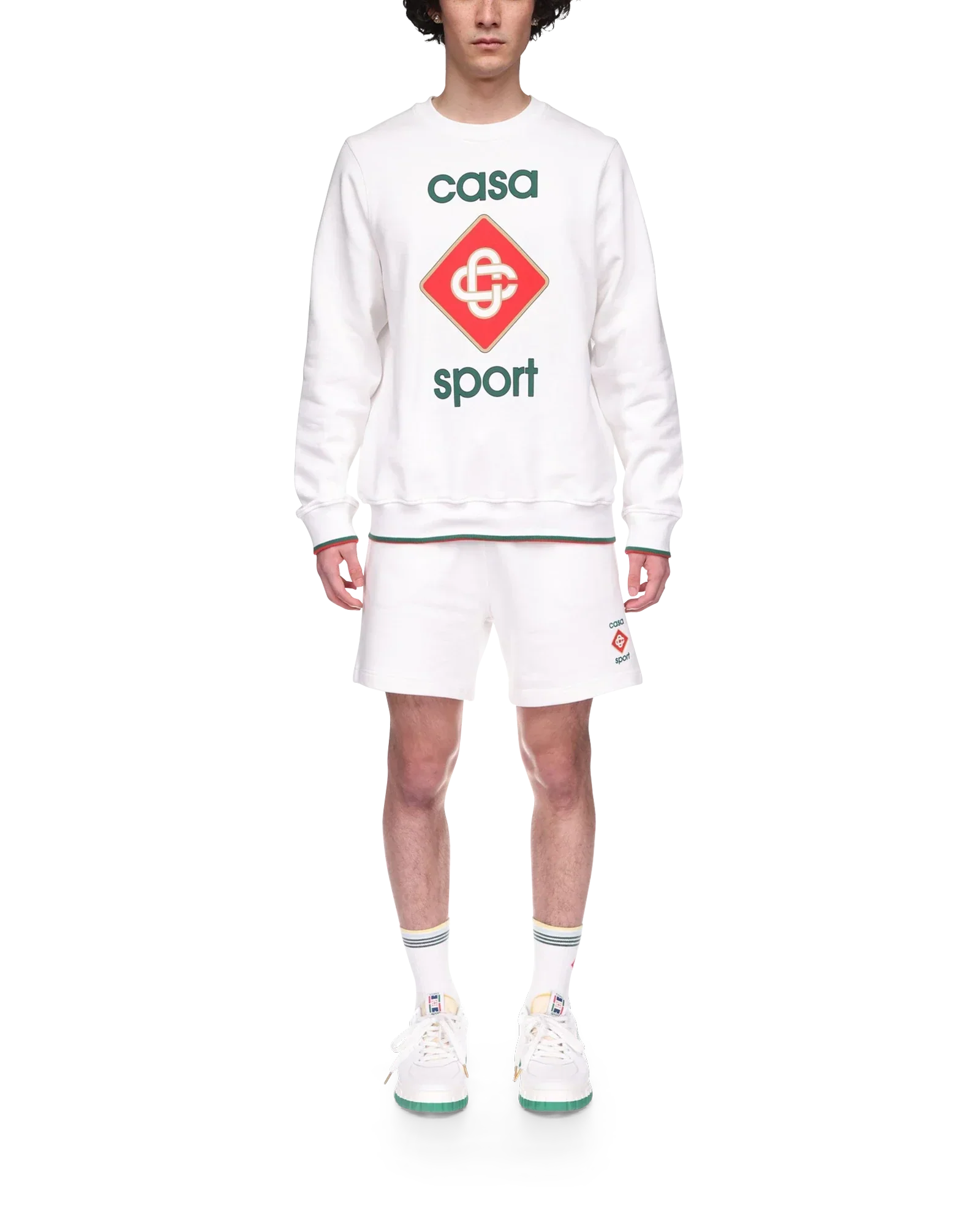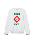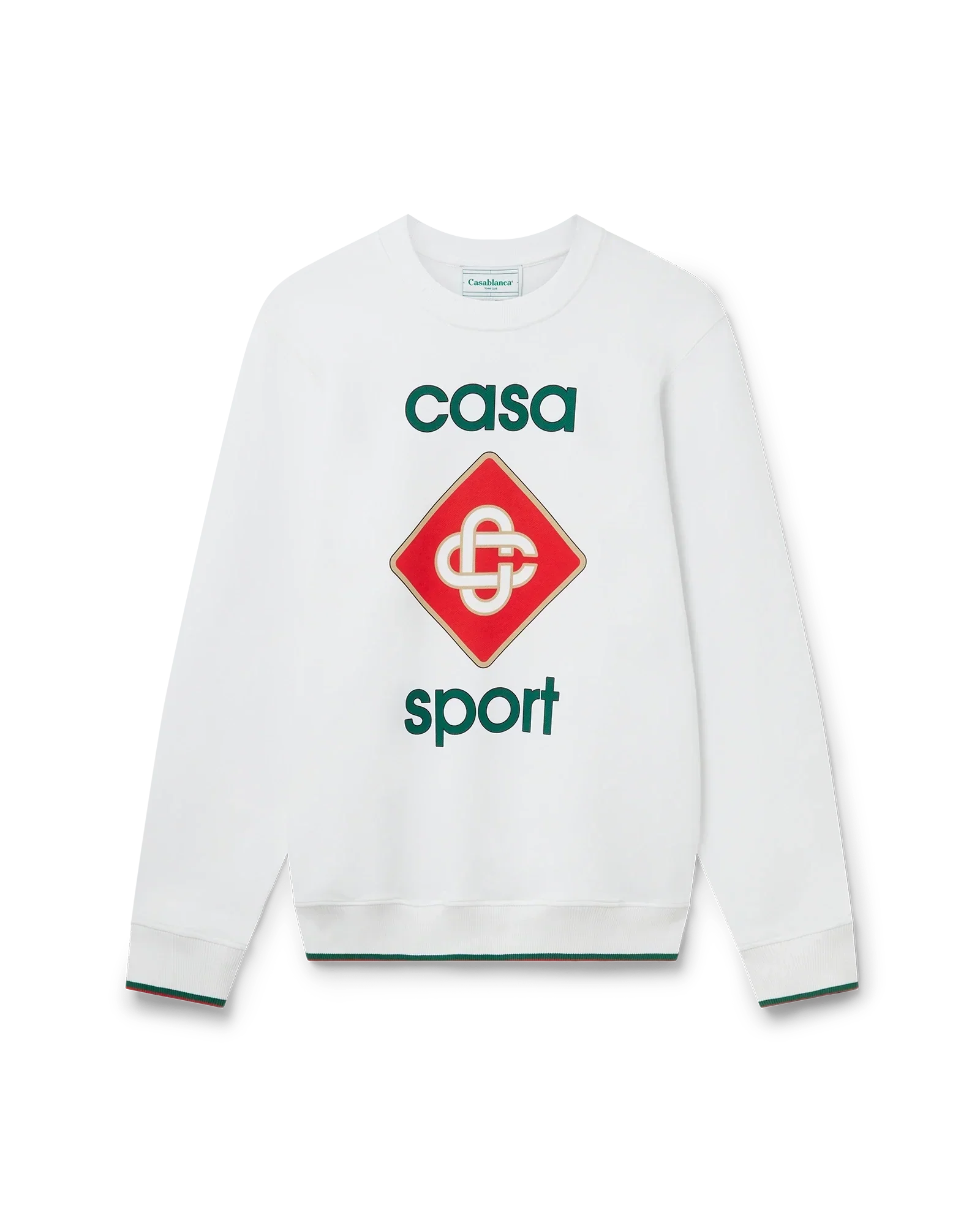 The Casa Sport Logo screen-printed white unisex sweatshirt reinterprets the Casablanca Paris logo to sportif effect, which is then emblazoned across the chest. Crafted from organic cotton, the style is a classic long-sleeved crewneck and has been designed for a relaxed fit.