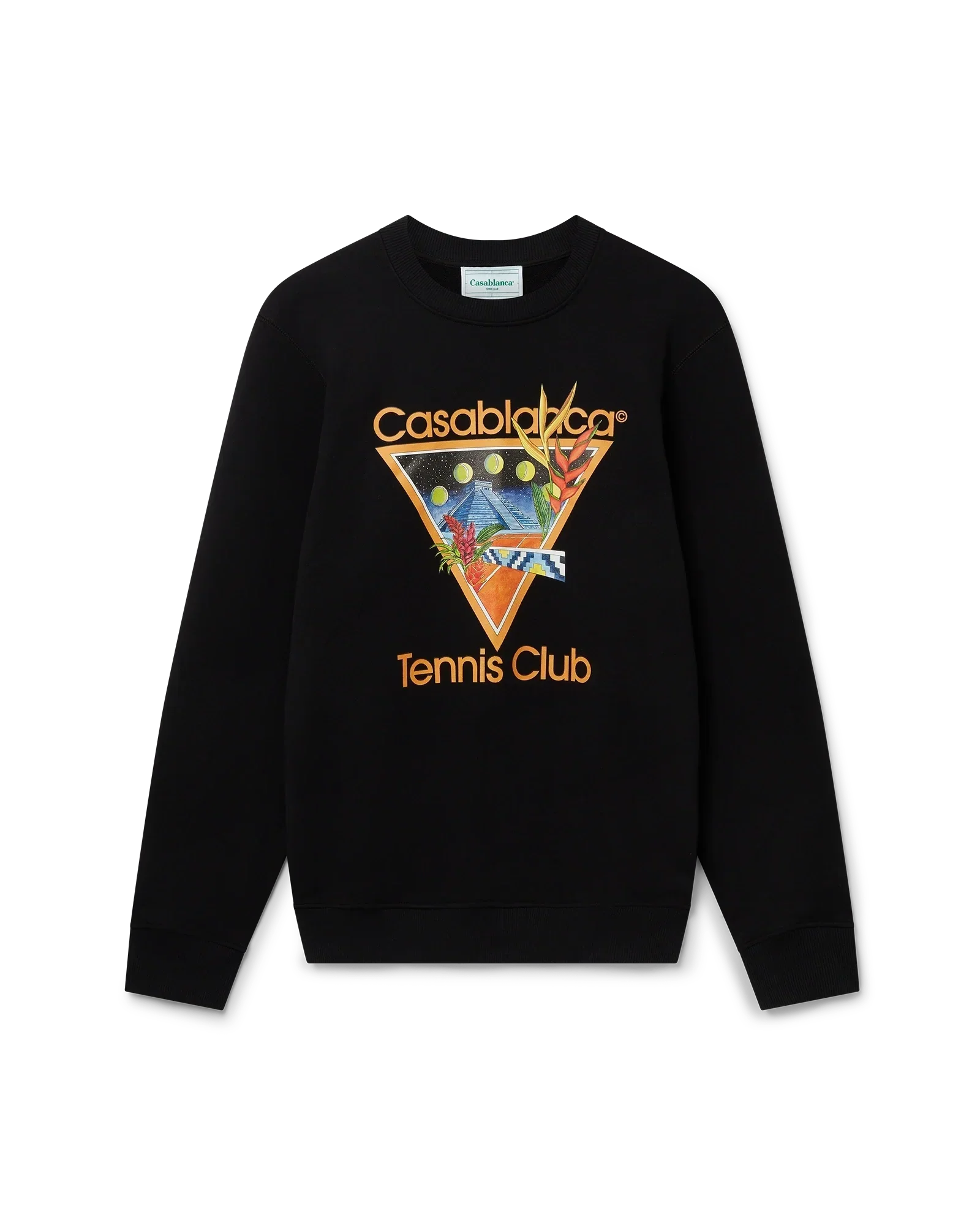 The Casablanca Paris black Tennis Club Icon sweatshirt champions a sporting aesthetic. Made of 100% organic cotton, the style is a classic long-sleeved crewneck style and has been designed for a relaxed fit.
