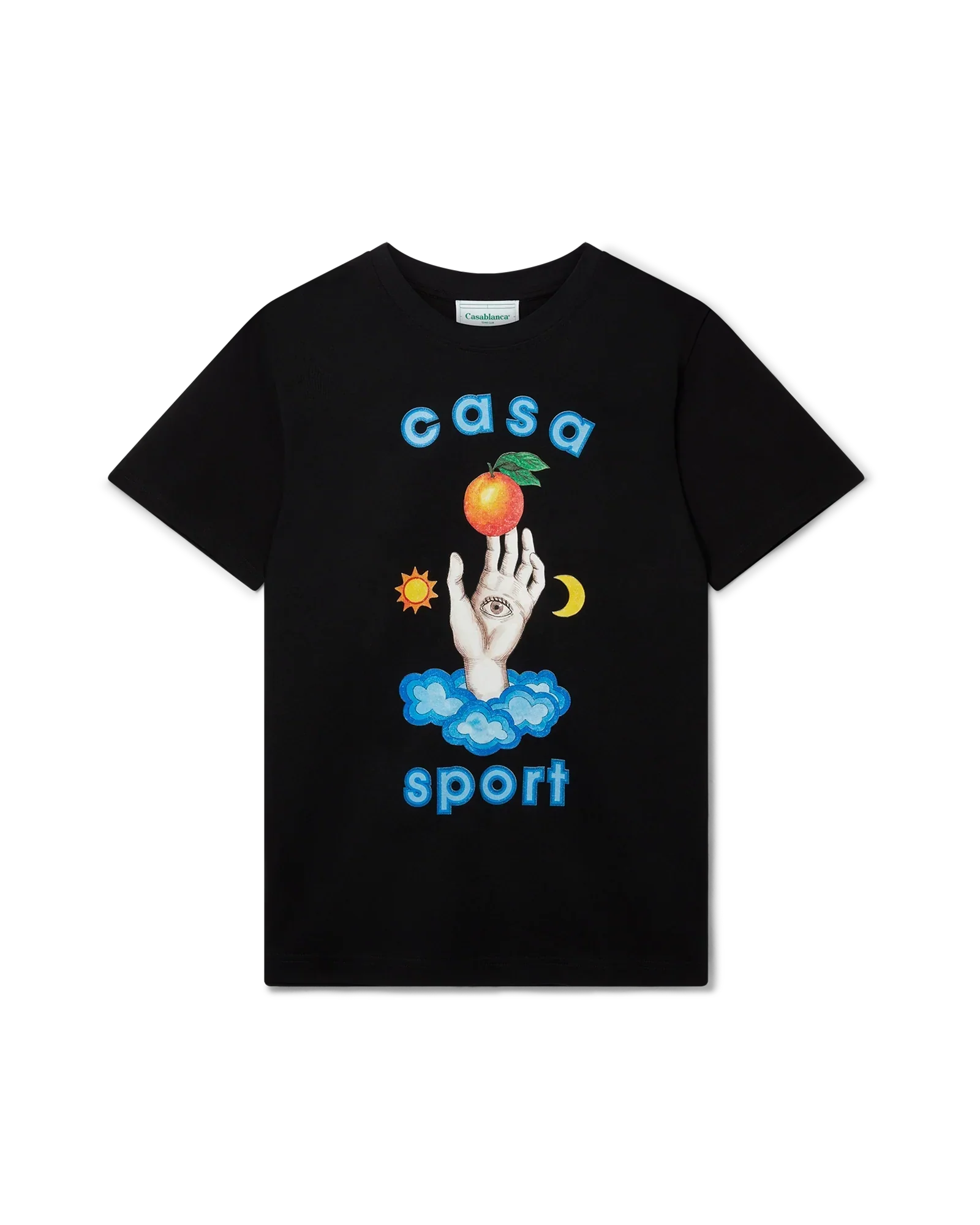 The Casa Talisman black screen-printed organic cotton t-shirt features seasonal artwork incorporating the house's Casa Sport story. Completed with a classic crewneck, short sleeves and Casablanca Paris branded label, designed for a relaxed fit.