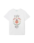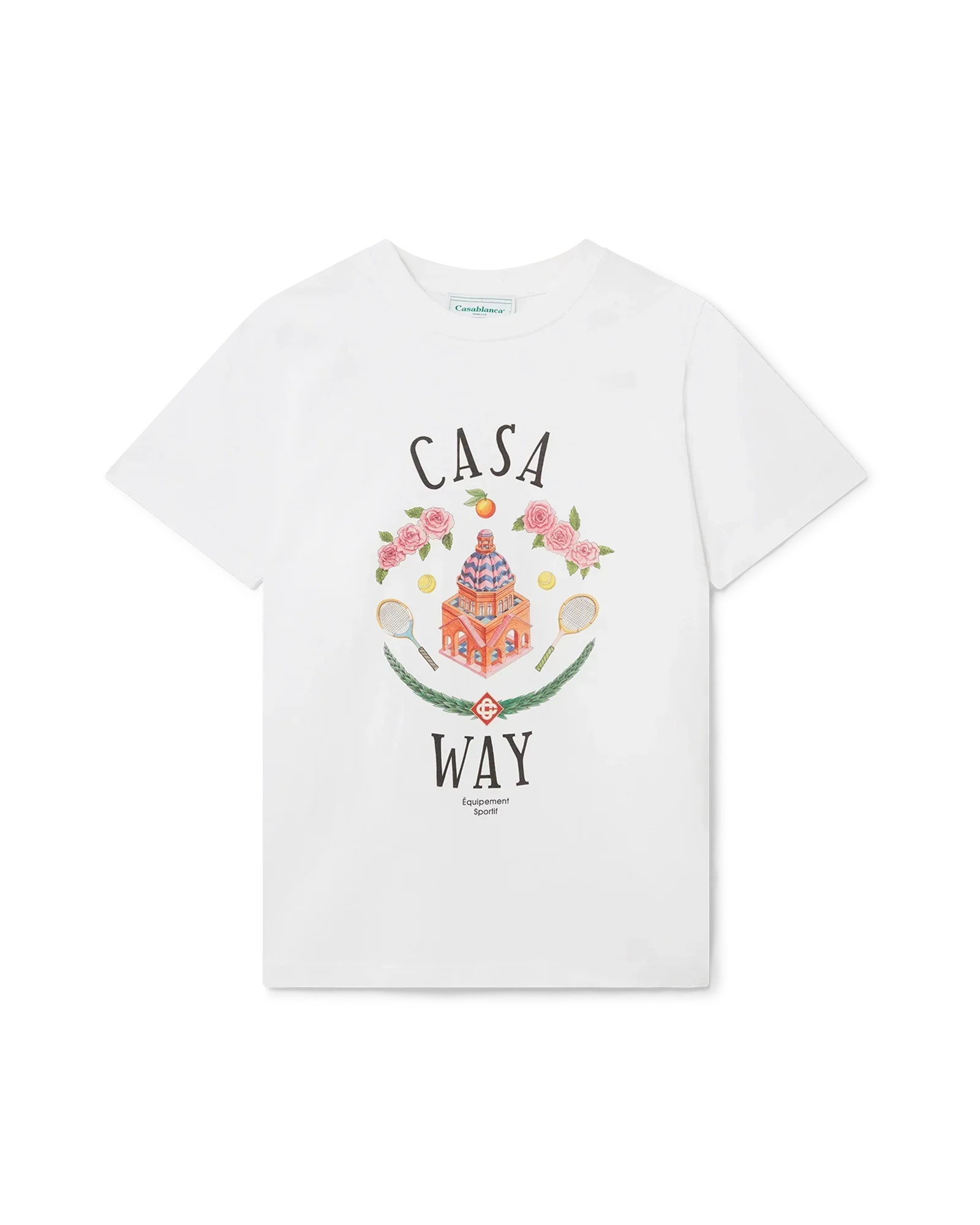 The Casa Way white screen-printed organic cotton t-shirt features the house's signature artwork reinterpreted for this season. Completed with a classic crewneck, short sleeves and Casablanca Paris branded label, designed for a relaxed fit.