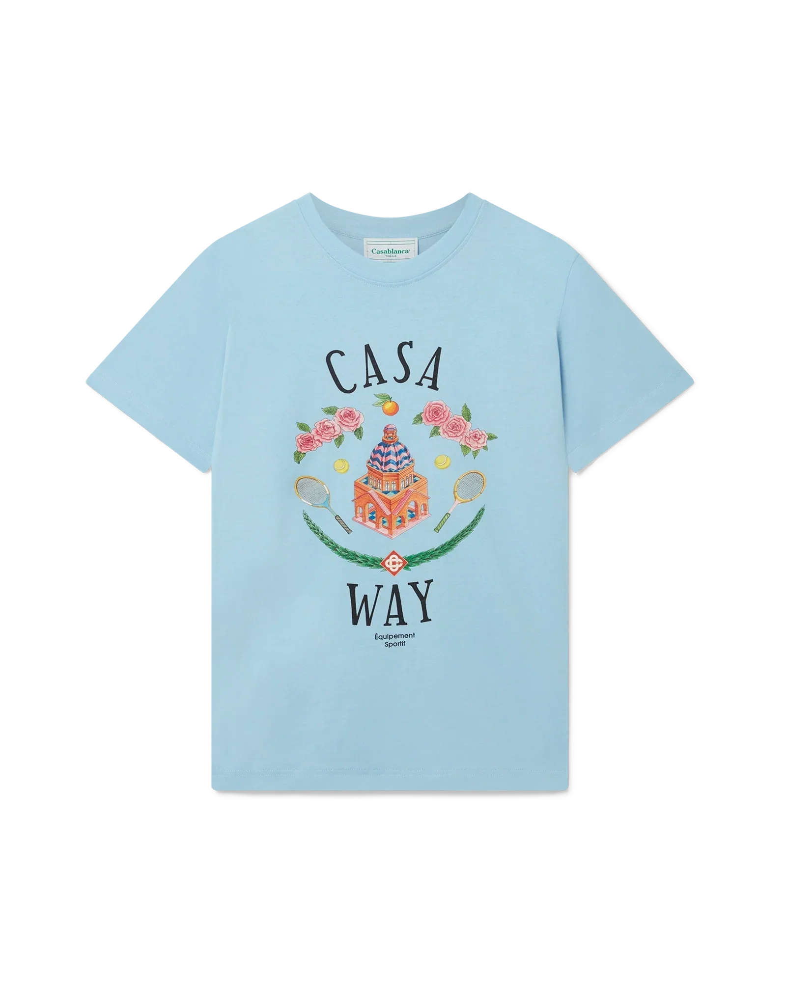 The Casa Way pale blue screen-printed organic cotton t-shirt features the house's signature artwork reinterpreted for this season. Completed with a classic crewneck, short sleeves and Casablanca Paris branded label, designed for a relaxed fit.