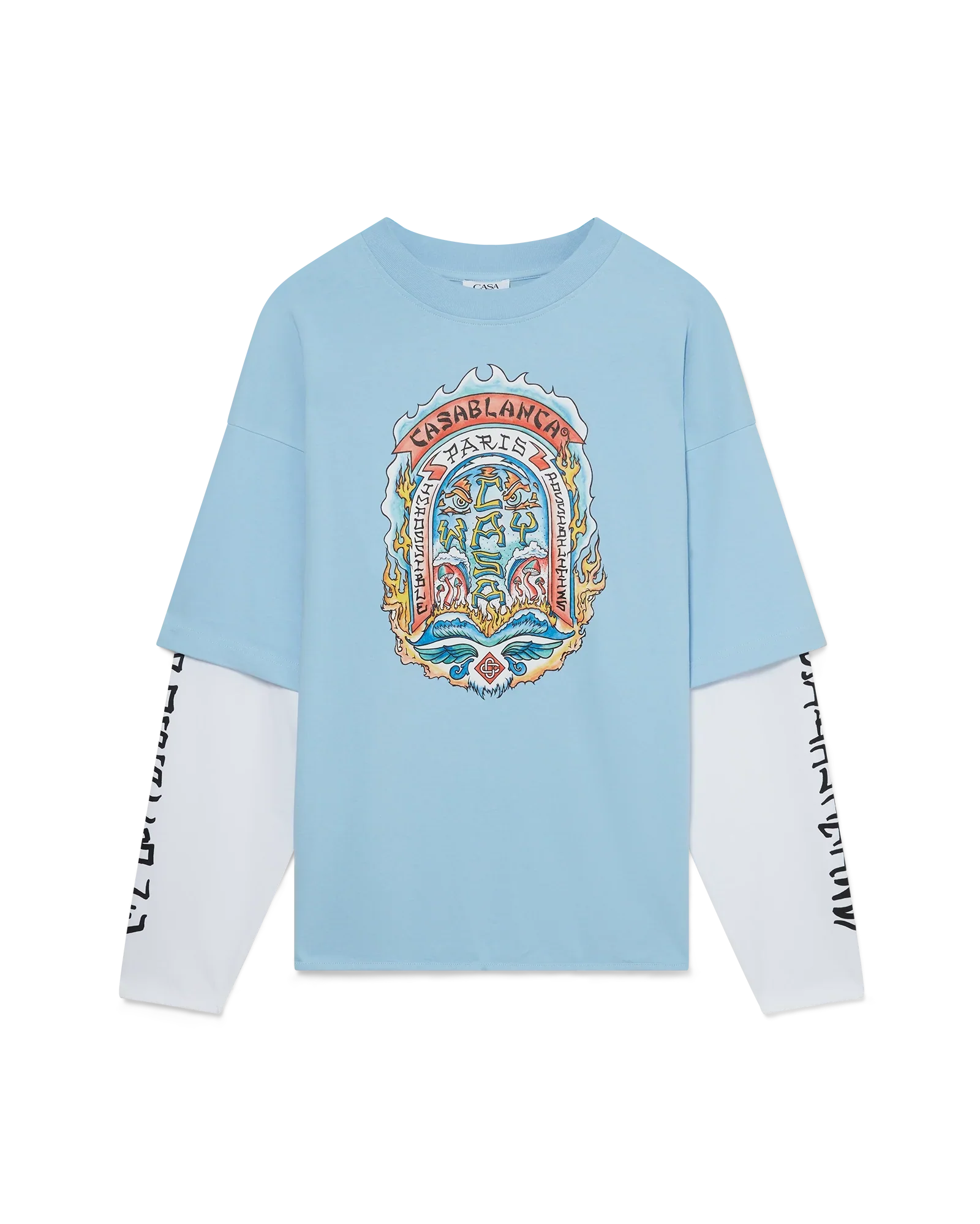 The Casa Way Skate double-layer t-shirt is a long-sleeve printed design crafted from organic cotton fabric and features signature artwork inspired by classic 70's California skate insignia with a fade-out frame. Completed with a classic crew neck .