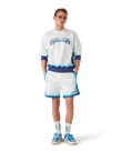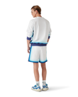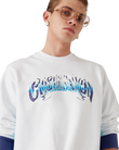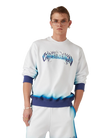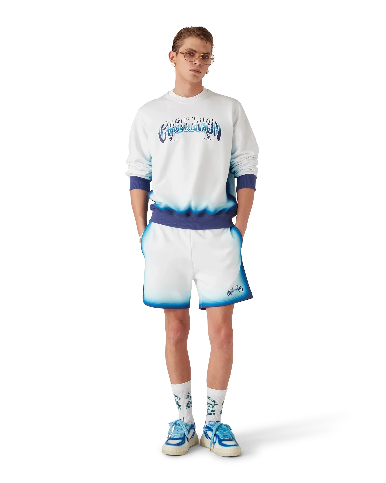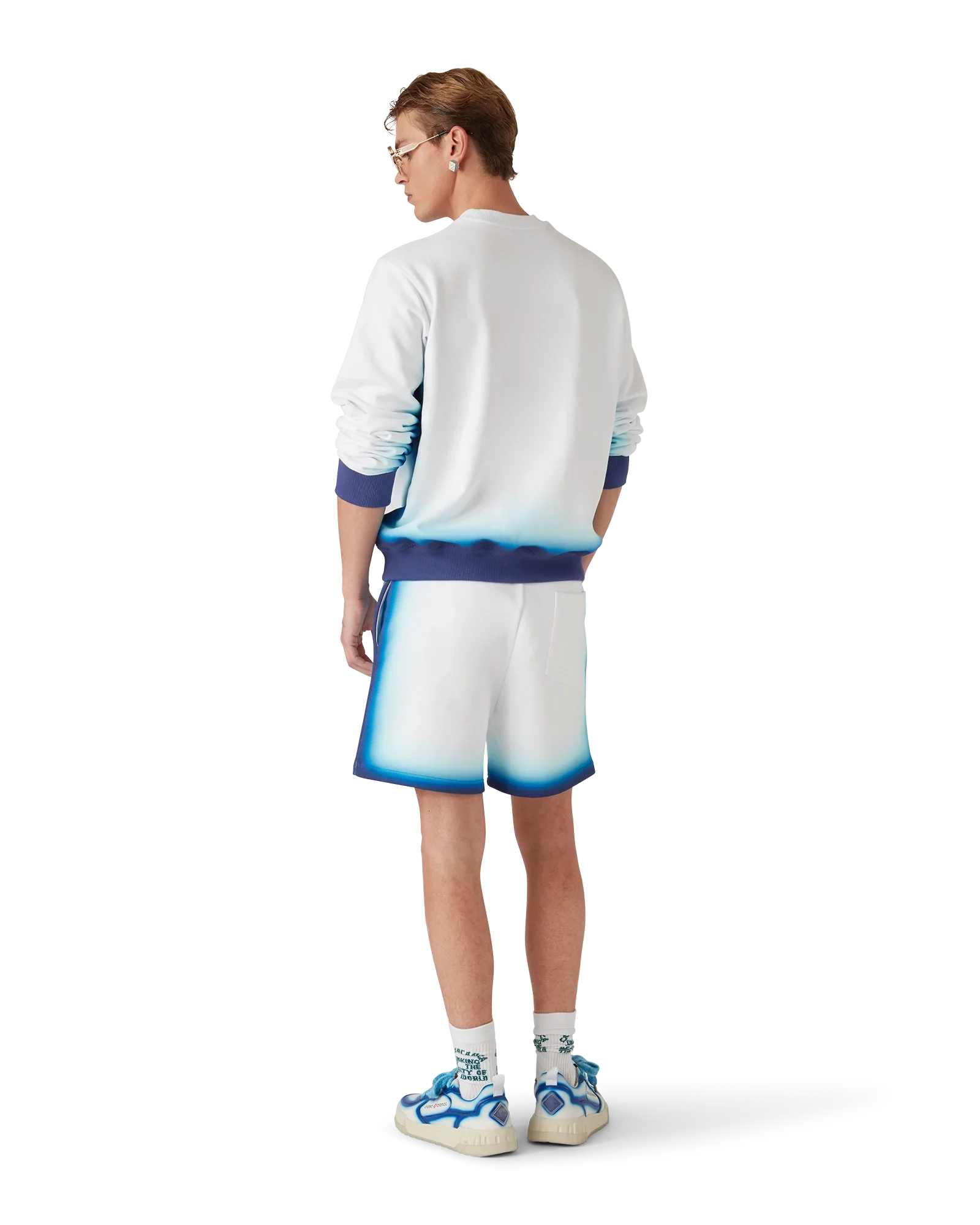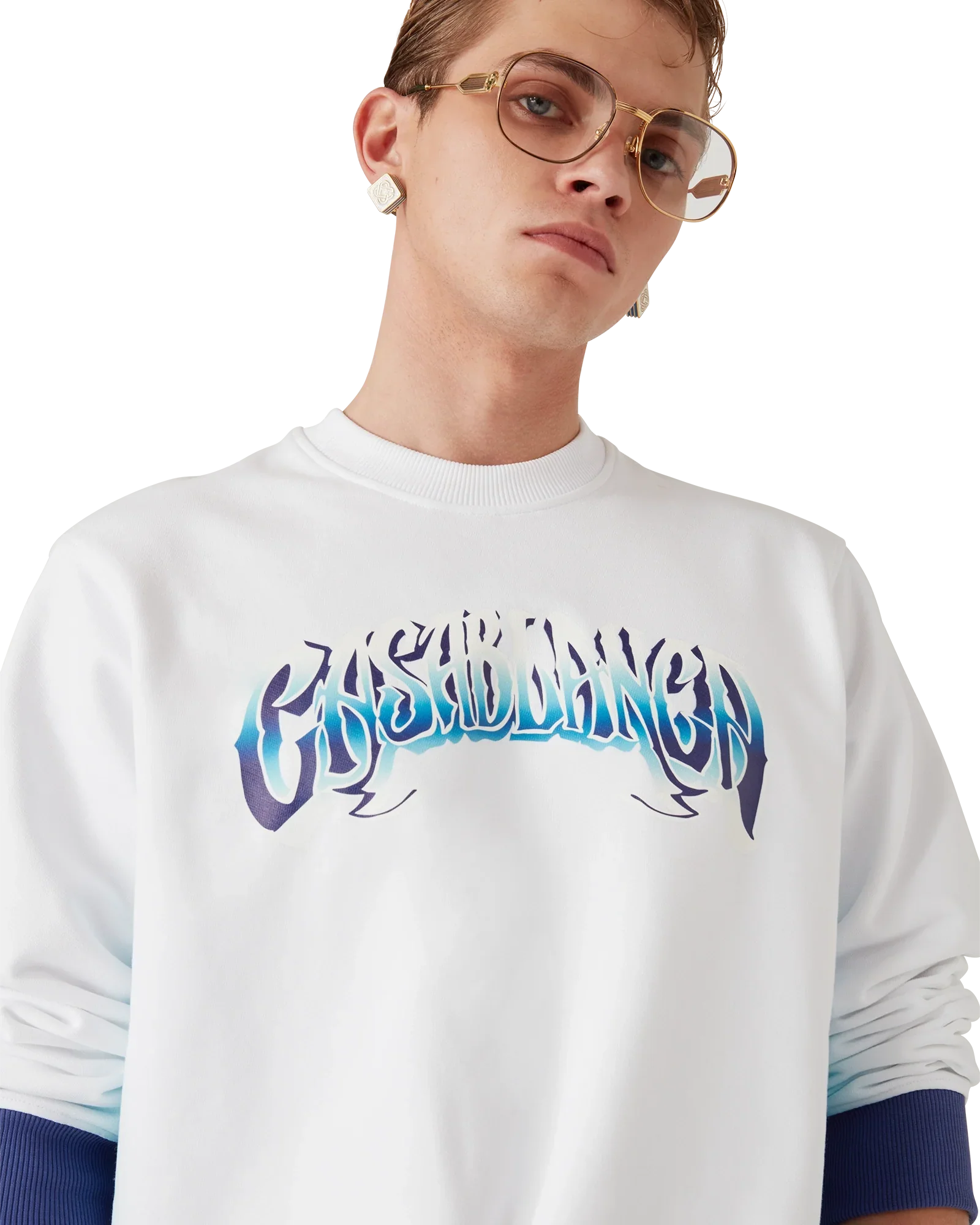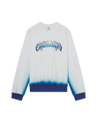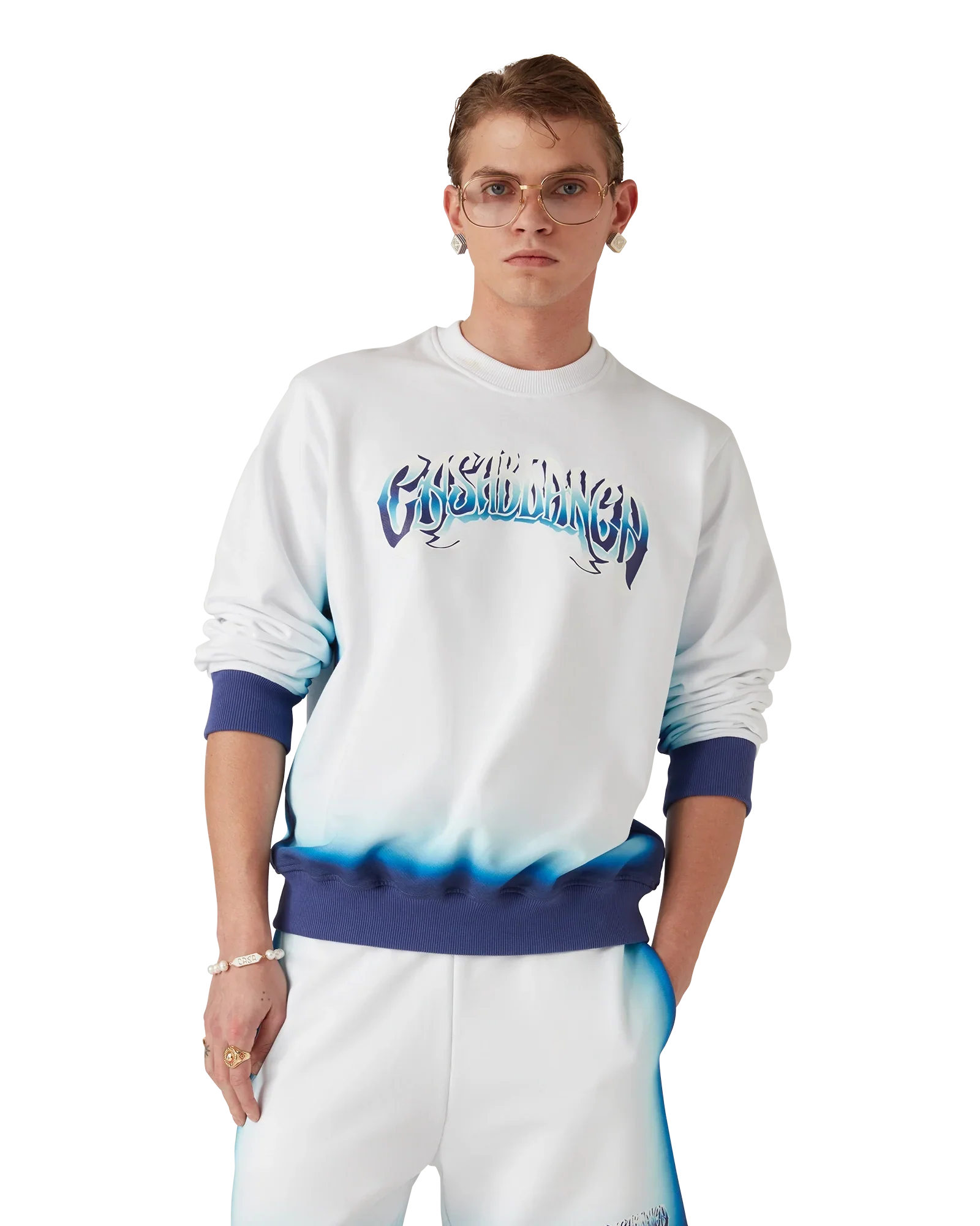 The Blue Fade sweatshirt is a long-sleeve design featuring the house's Casablanca logo in a hand-drawn typography inspired by the gothic typeface used in tattoos, crafted from cotton fabric. Completed with a classic rib crew neck, contrasting rib cuffs and hem, and blue printed seams on the sleeves and sides.
