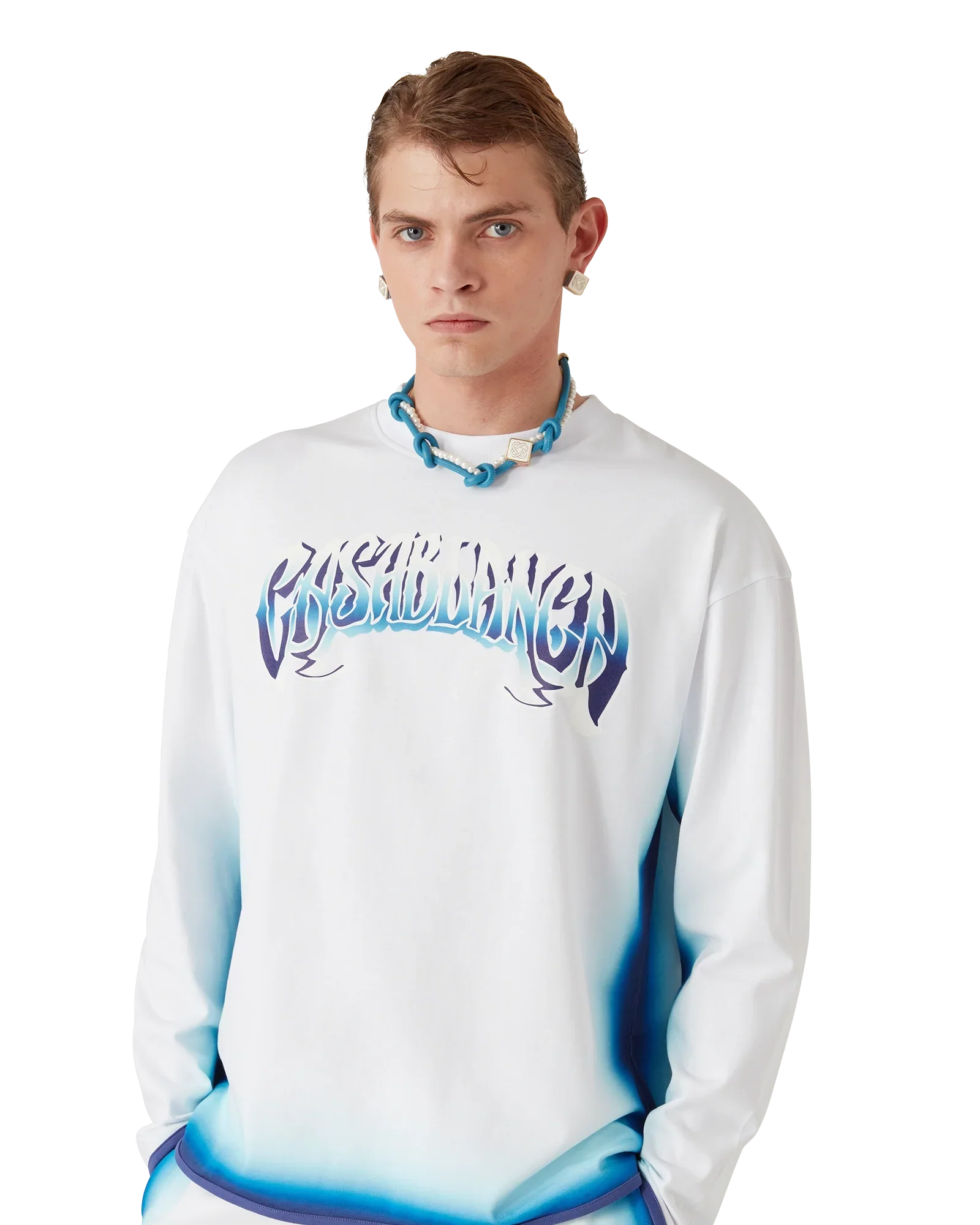 The Blue Fade long-sleeve t-shirt is a printed design crafted from organic cotton fabric and features hand-drawn typography of the Casablanca logo, inspired by the gothic typeface used in tattoos. Completed with a classic crew neck.