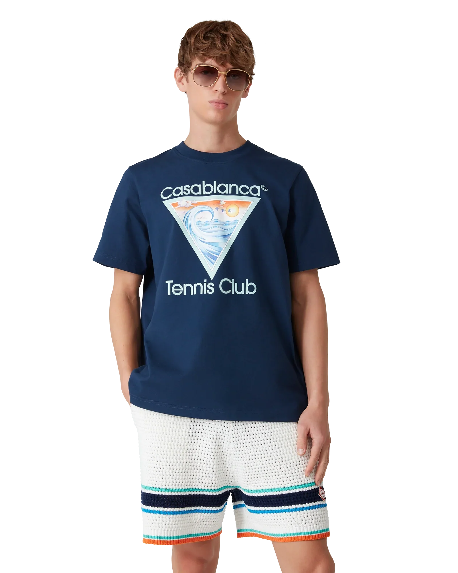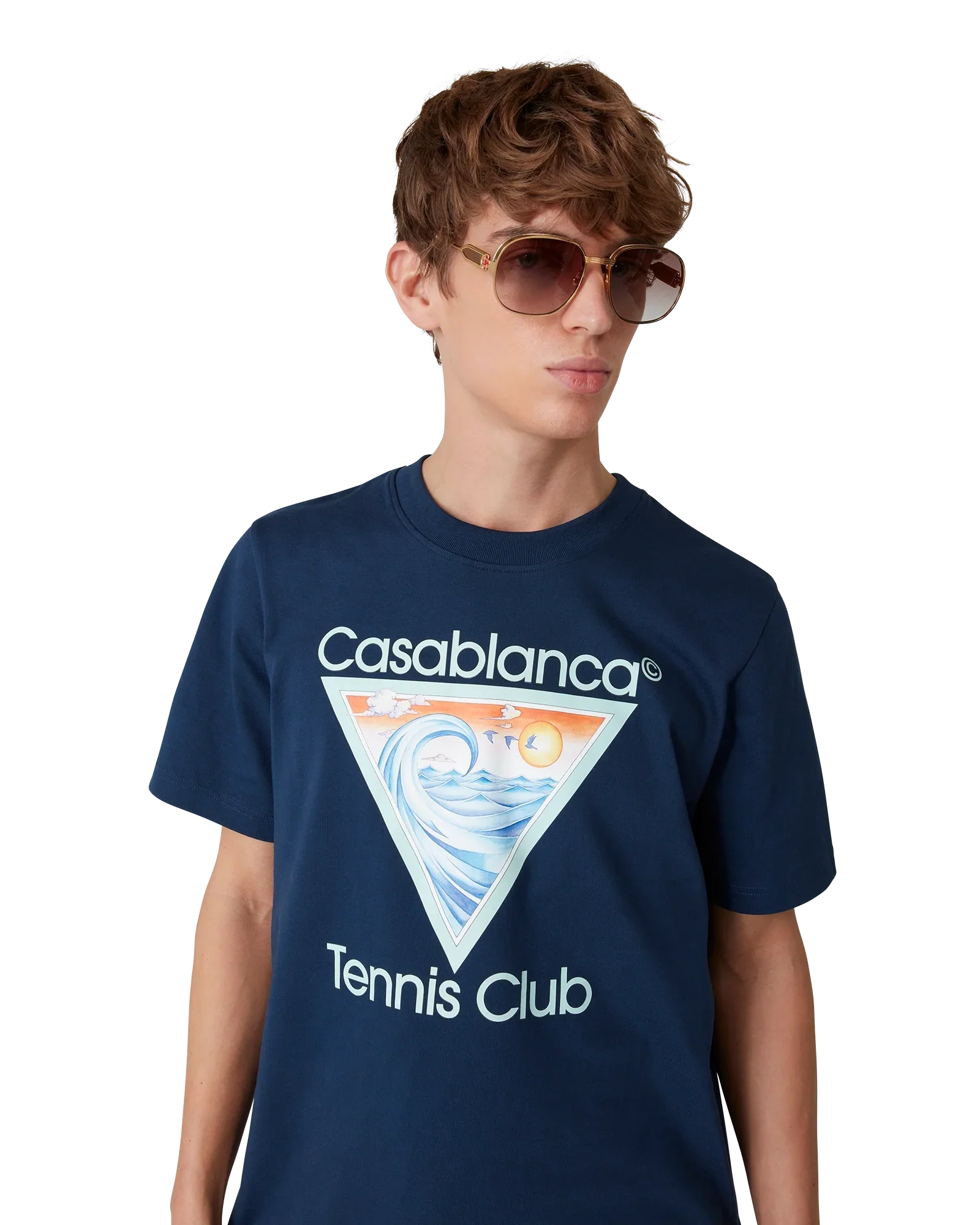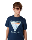 The Tennis Club Icon t-shirt is a short-sleeve printed design crafted from printed organic cotton fabric and features a seasonal take on our signature Tennis Club Icon artwork with design elements of nature, architecture, and tennis. Completed with a classic crew neck.