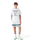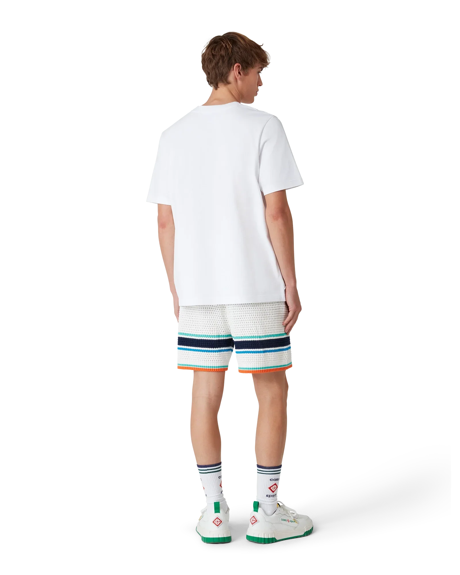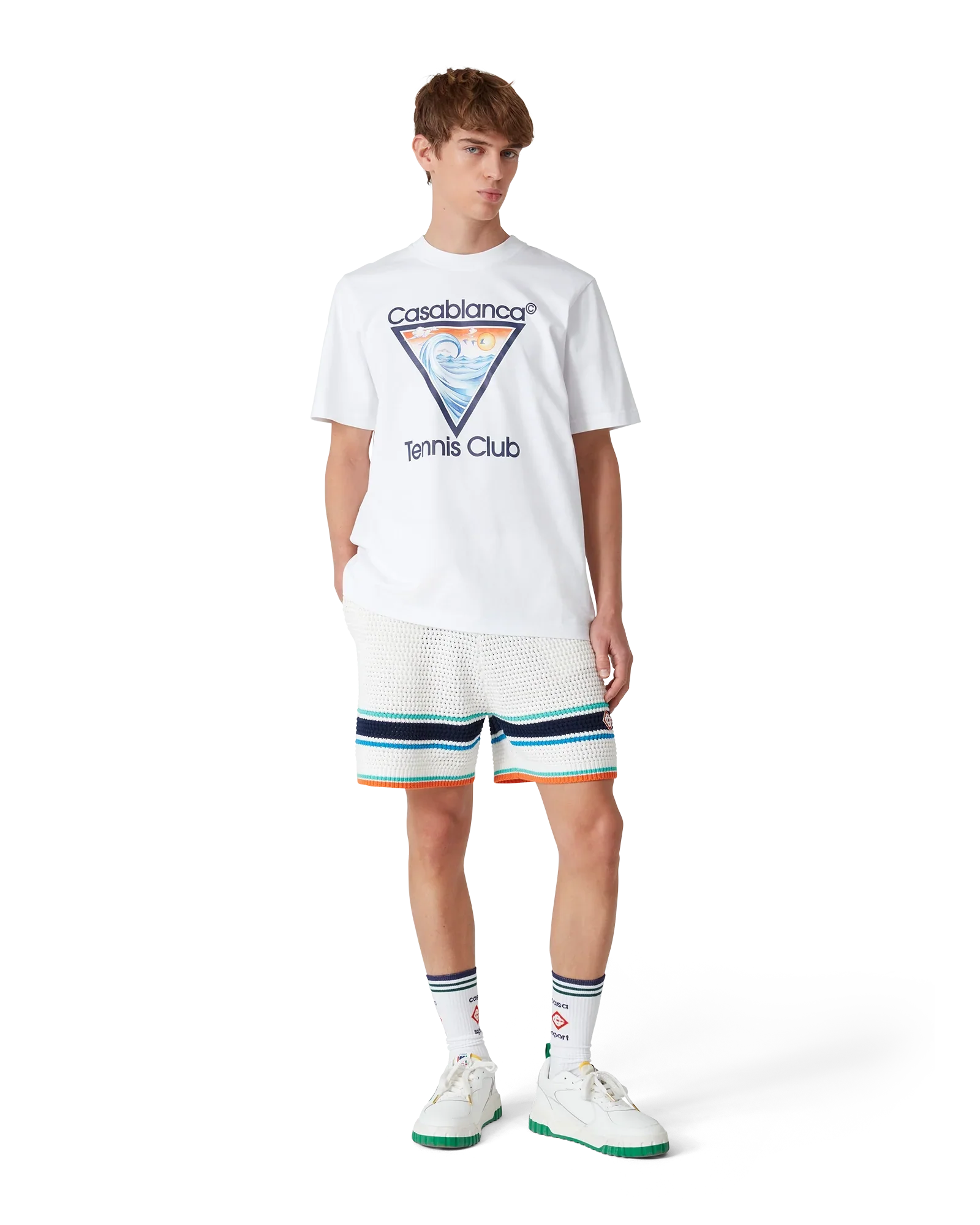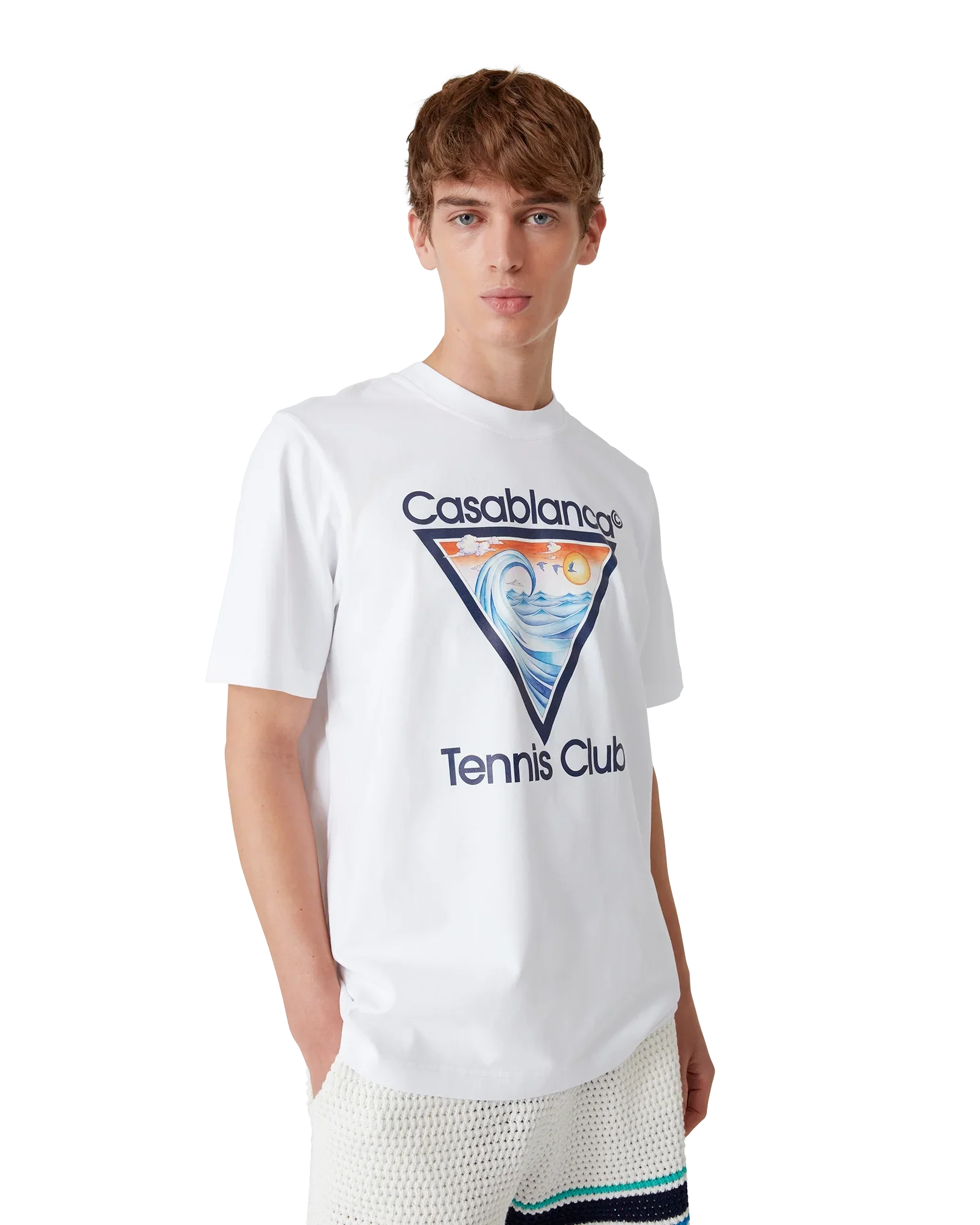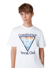 The Tennis Club Icon t-shirt is a short-sleeve printed design crafted from organic cotton fabric featuring a seasonal take on our signature Tennis Club Icon artwork with design elements of nature, architecture, and tennis. Completed with a classic crew neck.