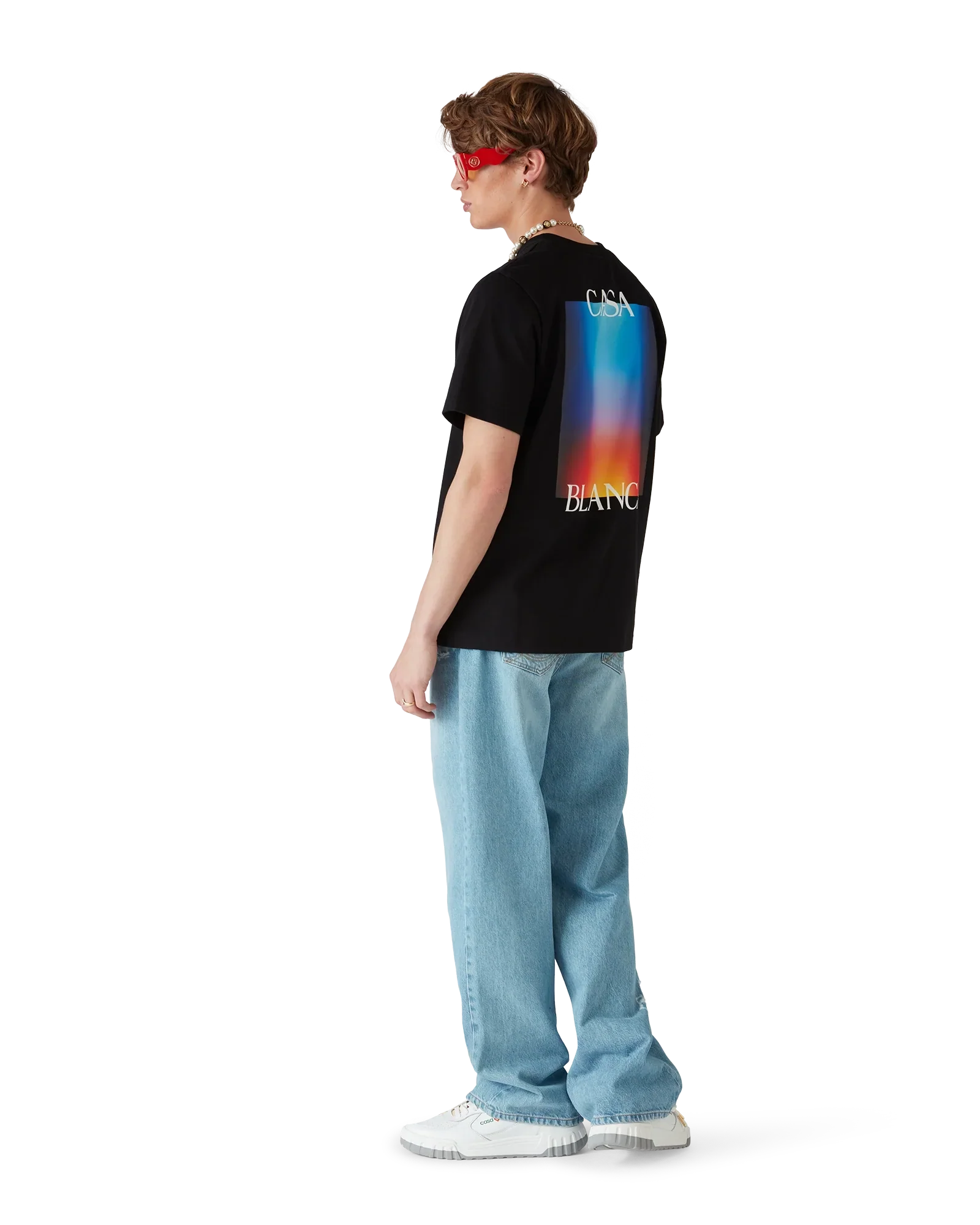 The Gradient Casa Logo t-shirt is a short-sleeved printed design crafted from organic cotton fabric featuring the house's seasonal gradient inspired by a futuristic interpretation of the Casablanca gradient: a halo shape inspired by vintage sci-fi posters and records. Completed with a classic crew neck.