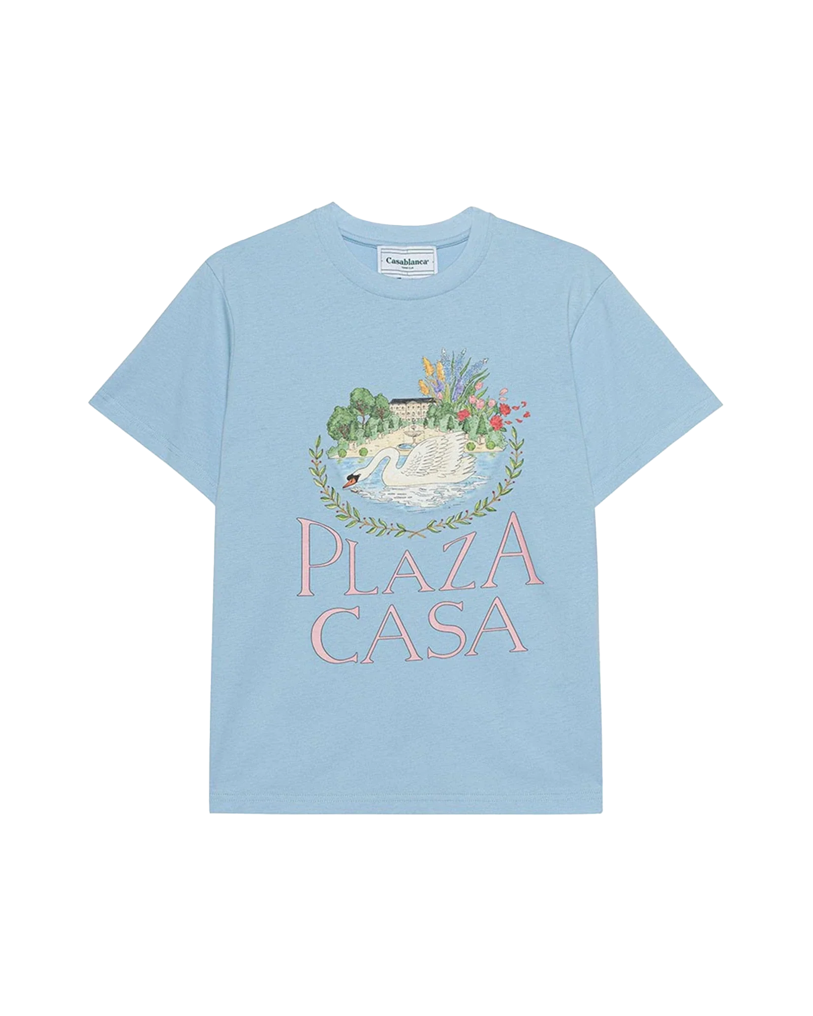 The Plaza Casa women's t-shirt is a short-sleeve printed design featuring the house's seasonal artwork incorporating signature design elements. Crafted from an organic cotton fabric, complete with a classic crew neck.