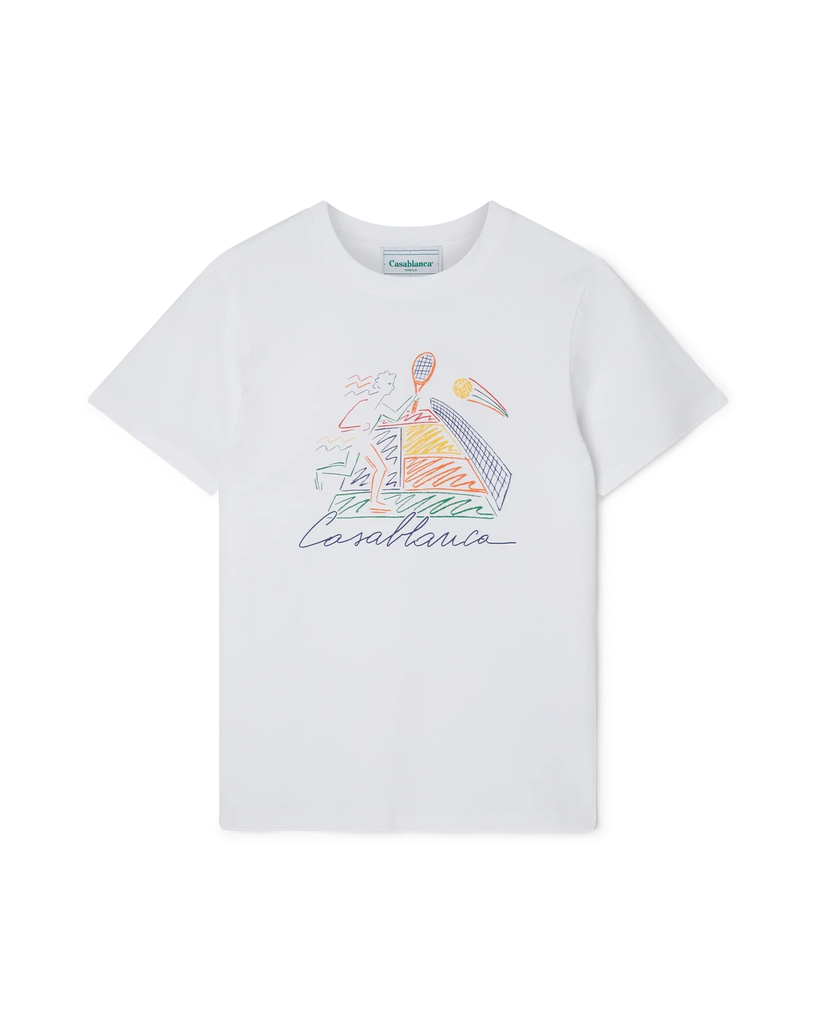 The Jeu de Crayon screen-printed organic cotton women's t-shirt features seasonal artwork incorporating the house's signature tennis iconography. Completed with a classic crewneck, short sleeves and Casablanca Paris branded label, designed for a relaxed fit.