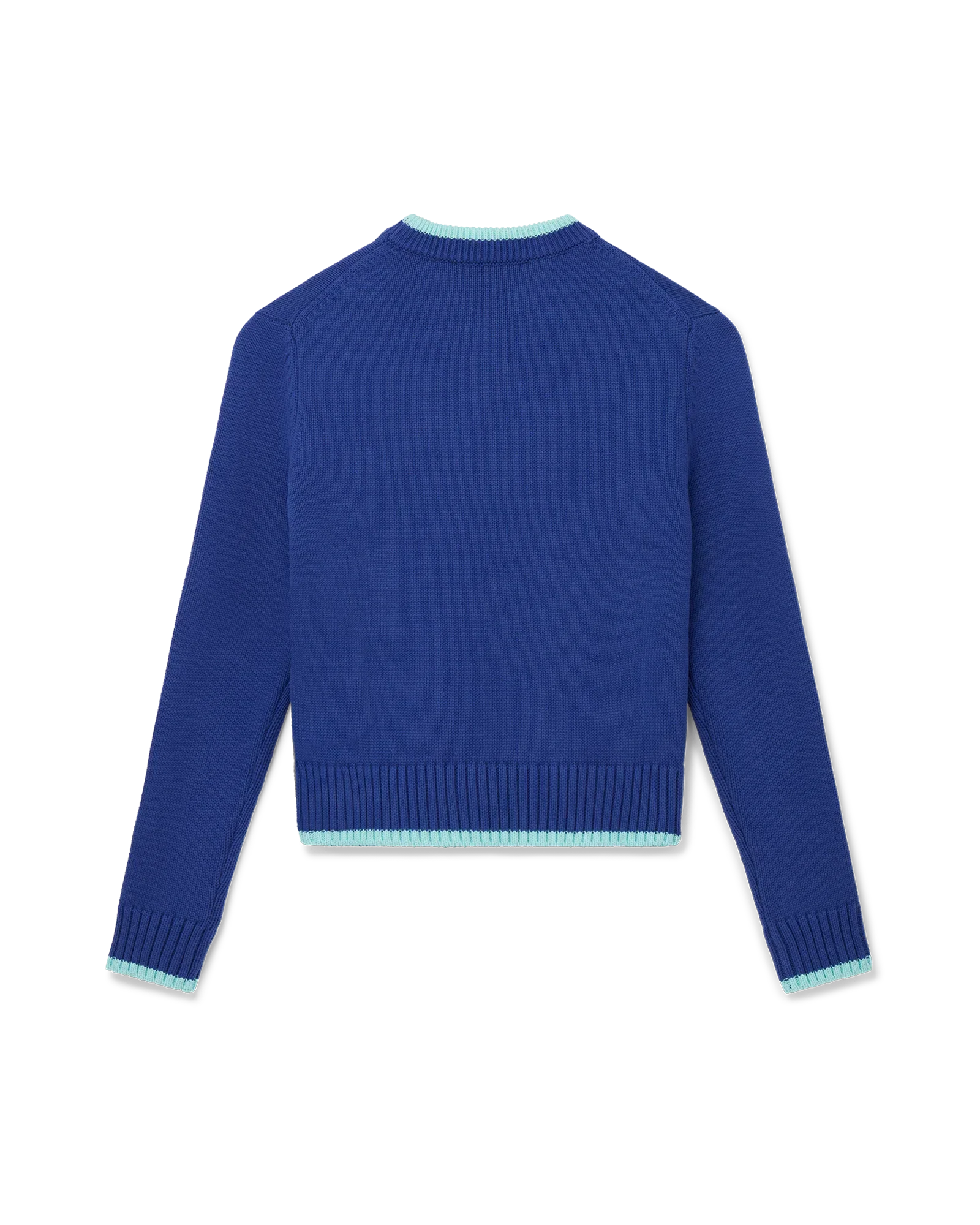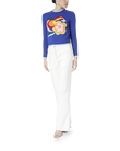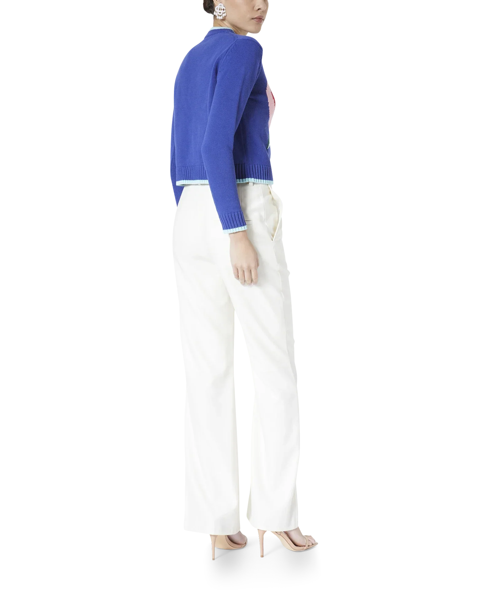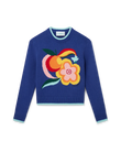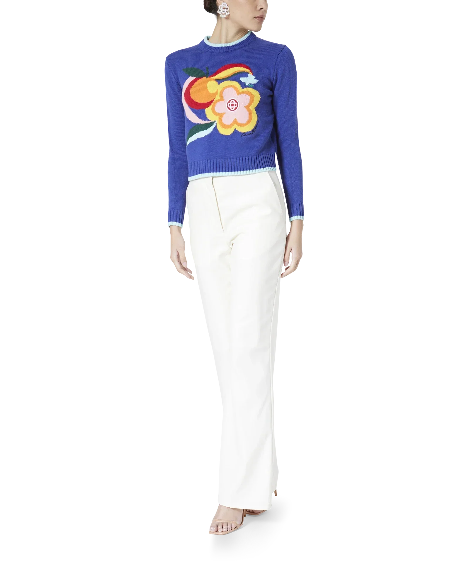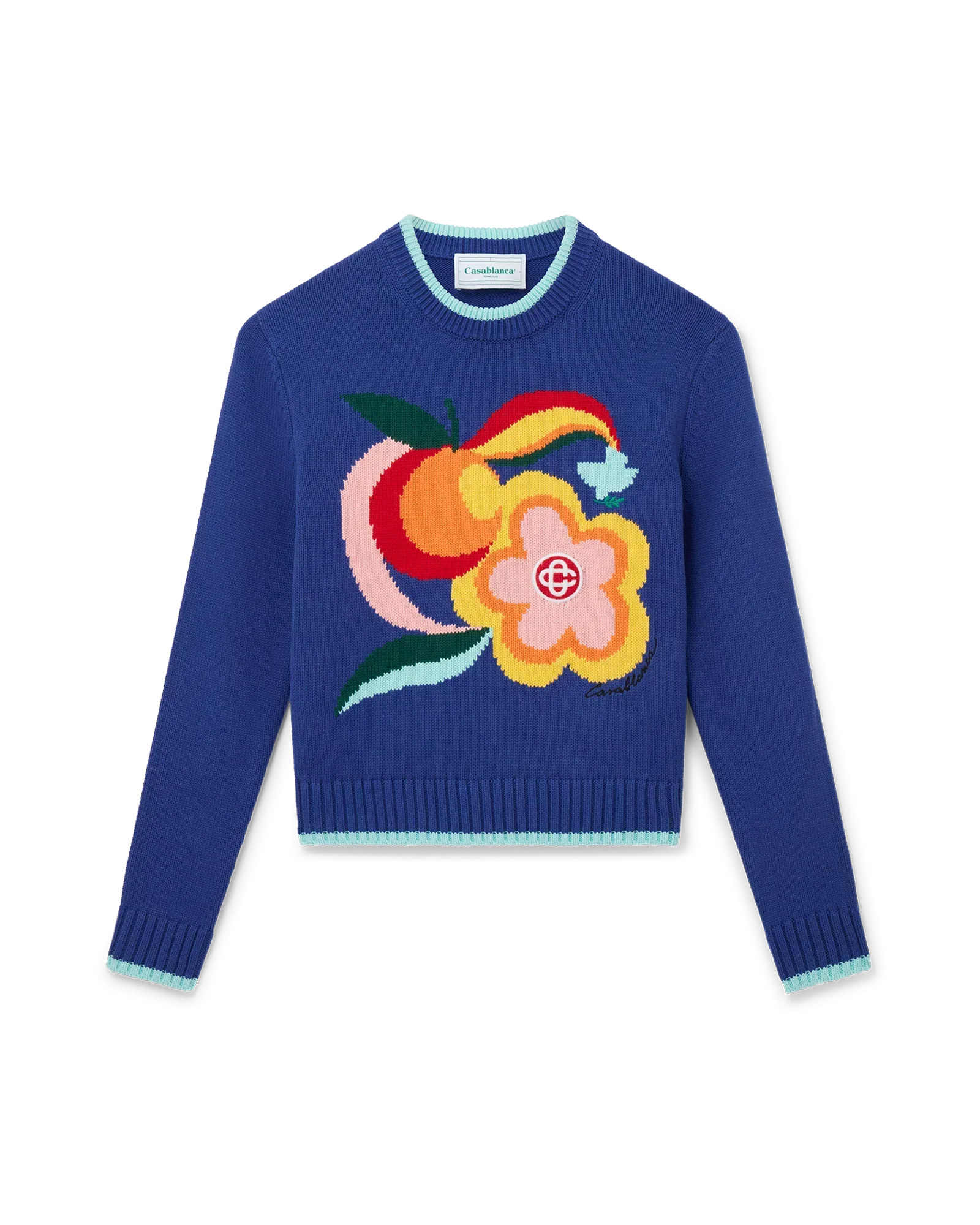 The Le Pouvoir Des Fleurs intarsia cotton jumper featuring seasonal artwork incorporating Casablanca symbology with Arabic iconography. Made of 100% cotton, the style is a classic long-sleeved high neck style with contrast rib knit collar and cuffs and has been designed for a classic fit.