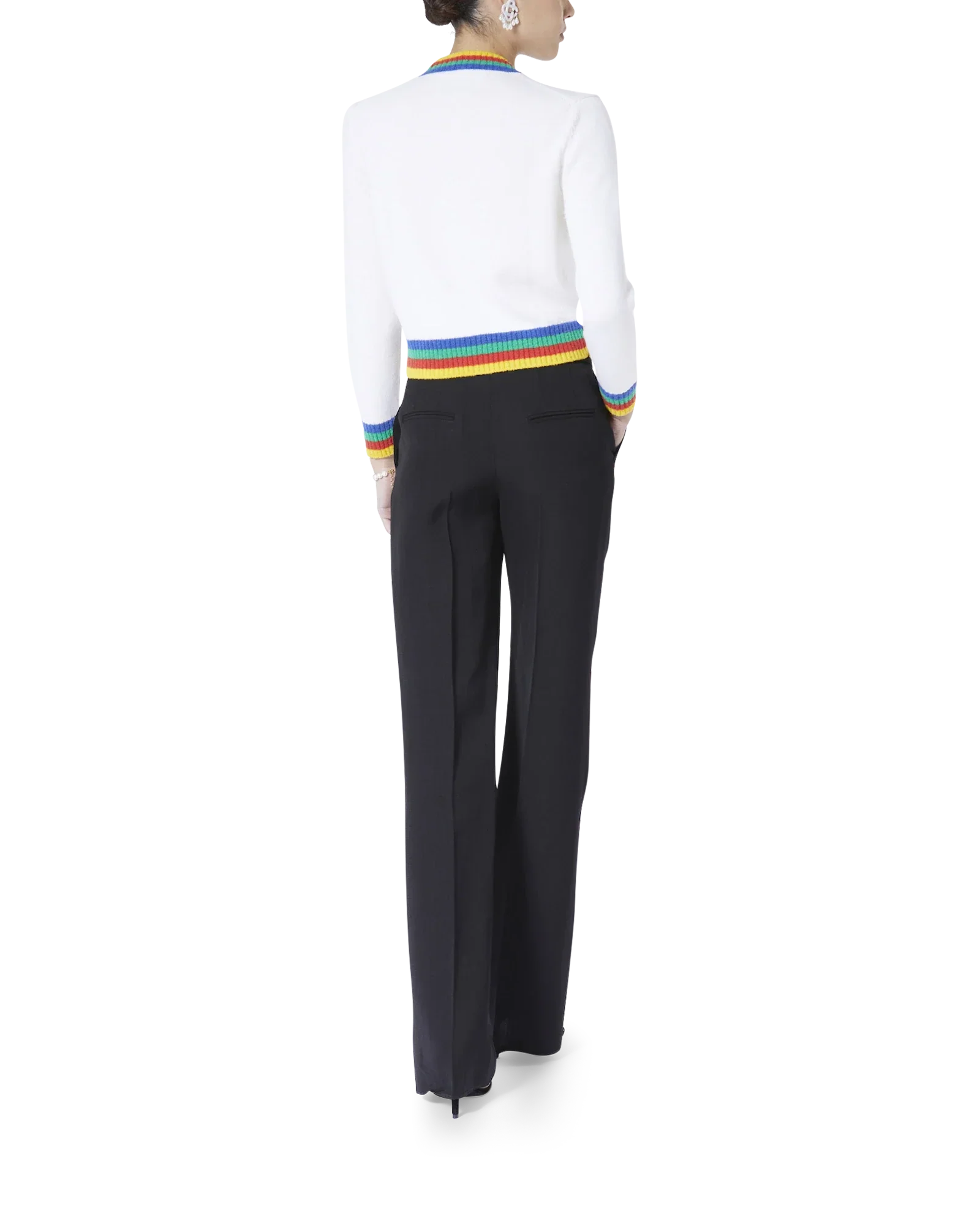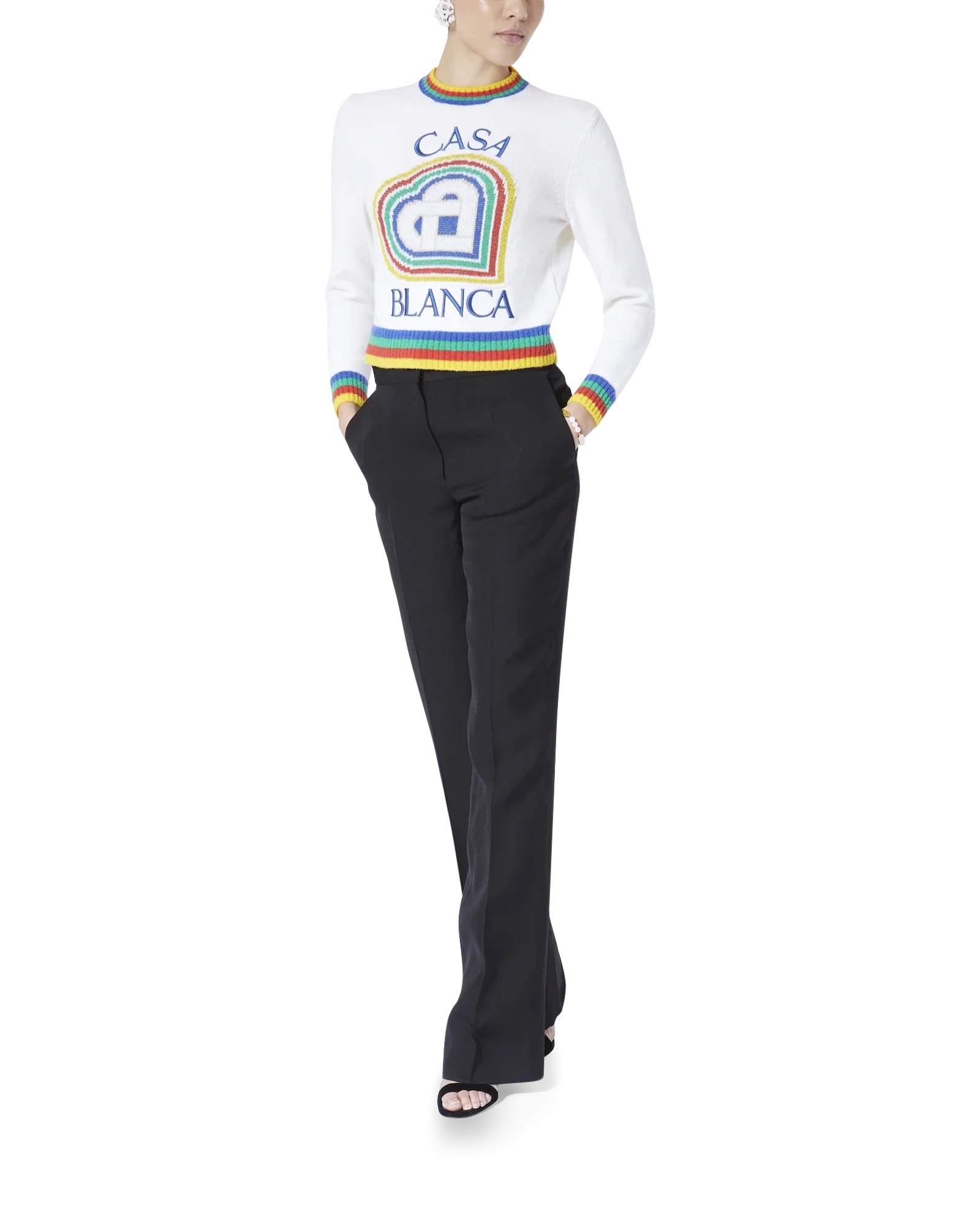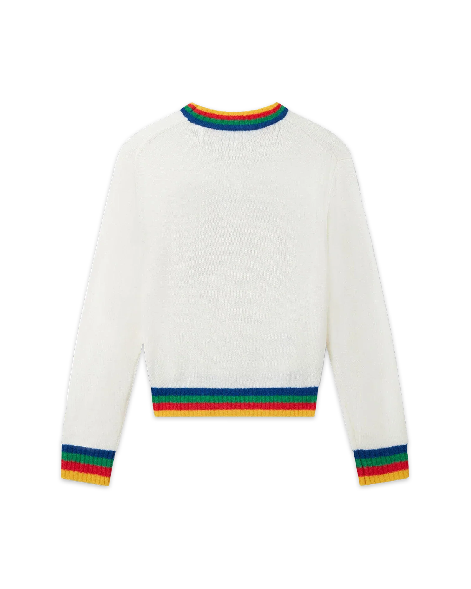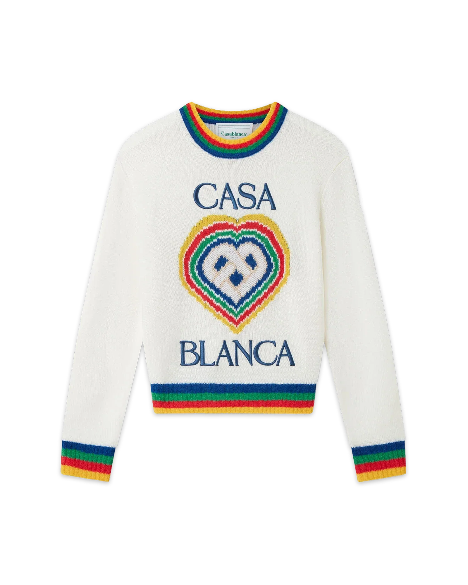 The Heart Casa intarsia wool jumper featuring seasonal artwork incorporating the house's stacked logo and heart monogram. Completed with a classic long-sleeved crew neck style with contrast rib knit collar and cuffs finishing.