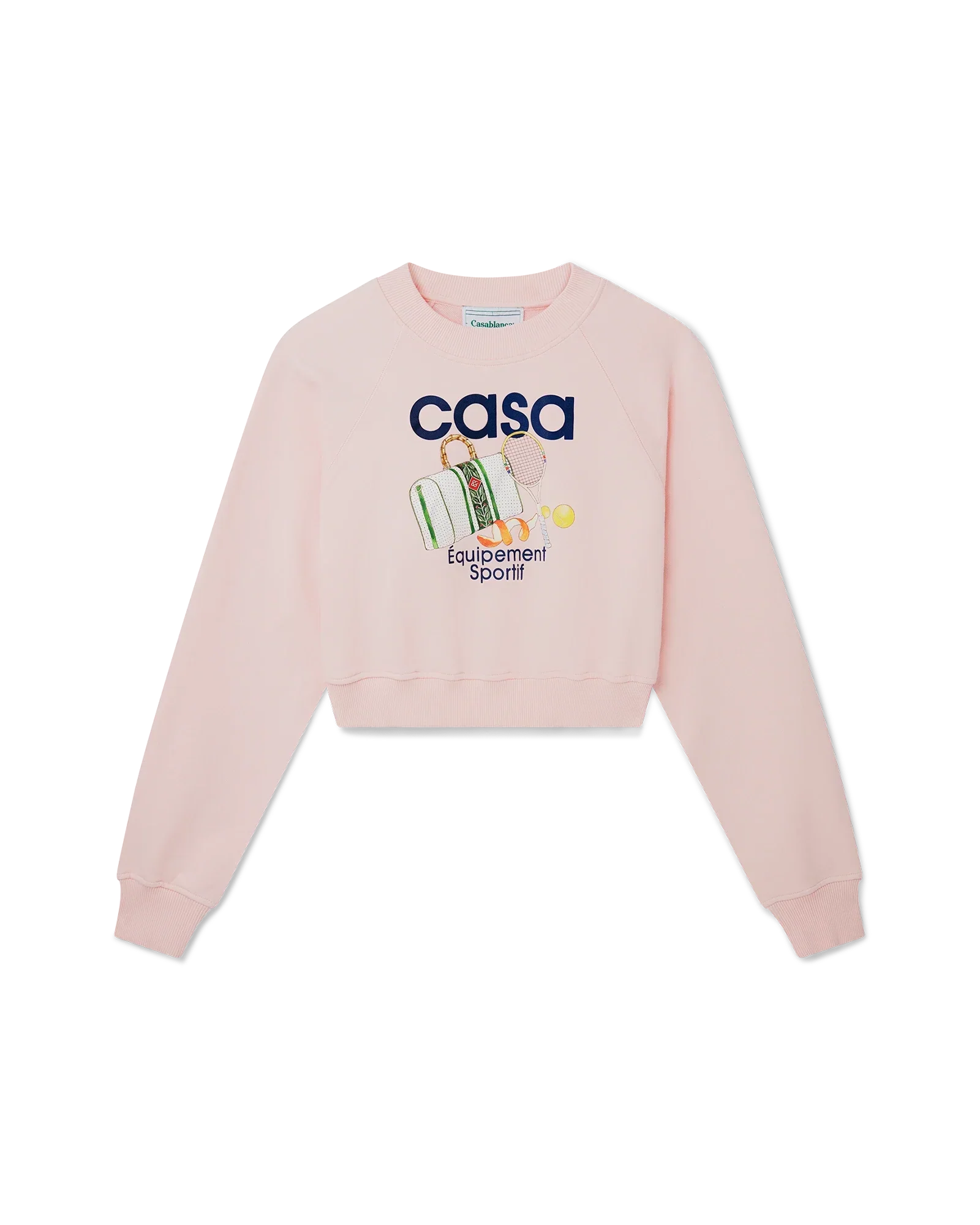 The Equipement Sportif cropped sweatshirt is a raglan sleeve sportswear design featuring screen-printed seasonal artwork of sporting equipment and incorporates an element of the house's signature artwork. Crafted from 100% organic cotton and completed with finely ribbed cuffs, hem and classic crewneck.