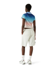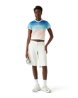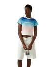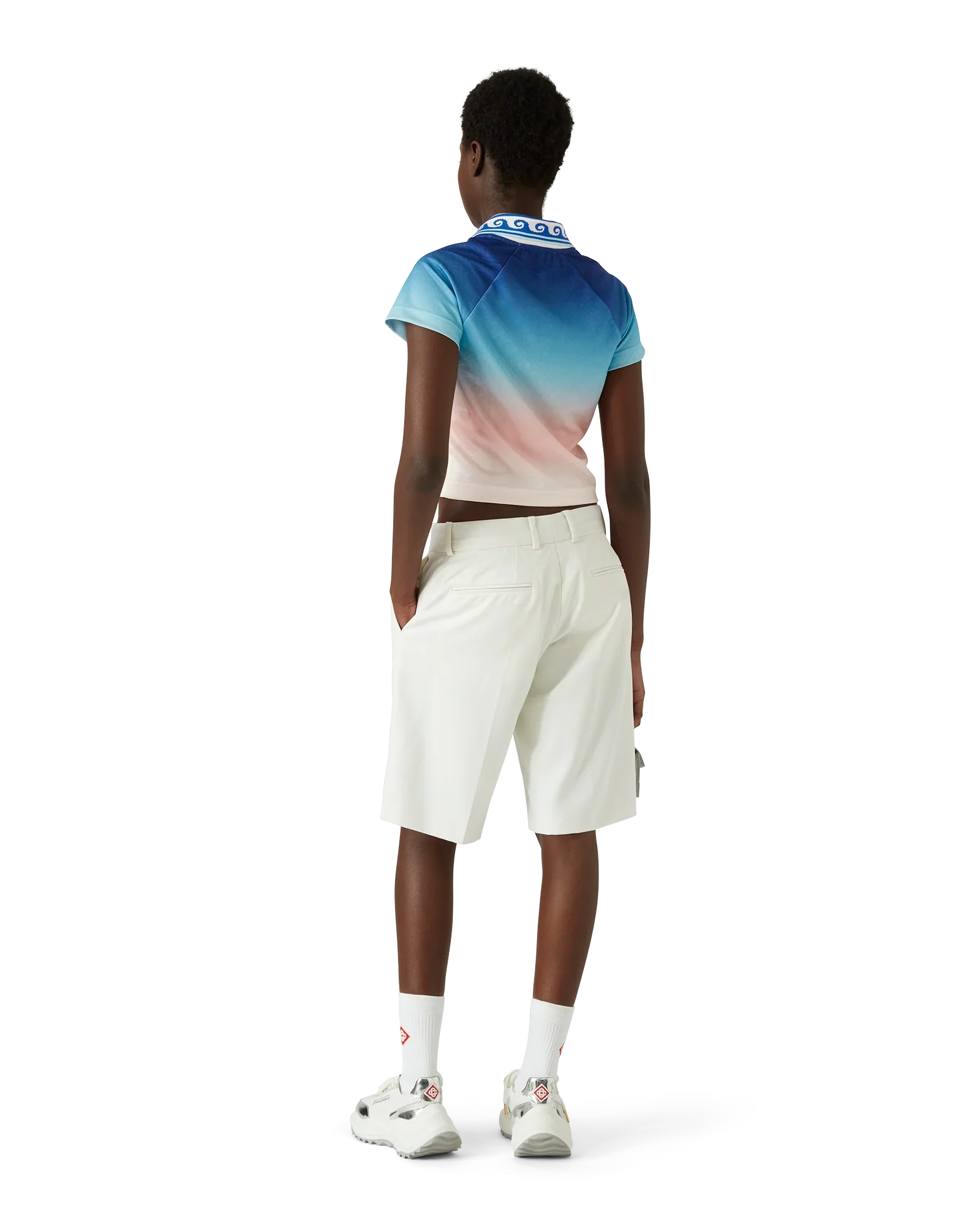 The Jacquard monogram football shirt is a fitted, cropped, capped-sleeve sportswear design featuring the house's signature diamond monogram. Crafted from a gradient jacquard monogram fabric and completed with the house's signature diamond logo applique, a contrast rib collar, and a Casablanca logo across the chest.