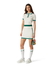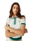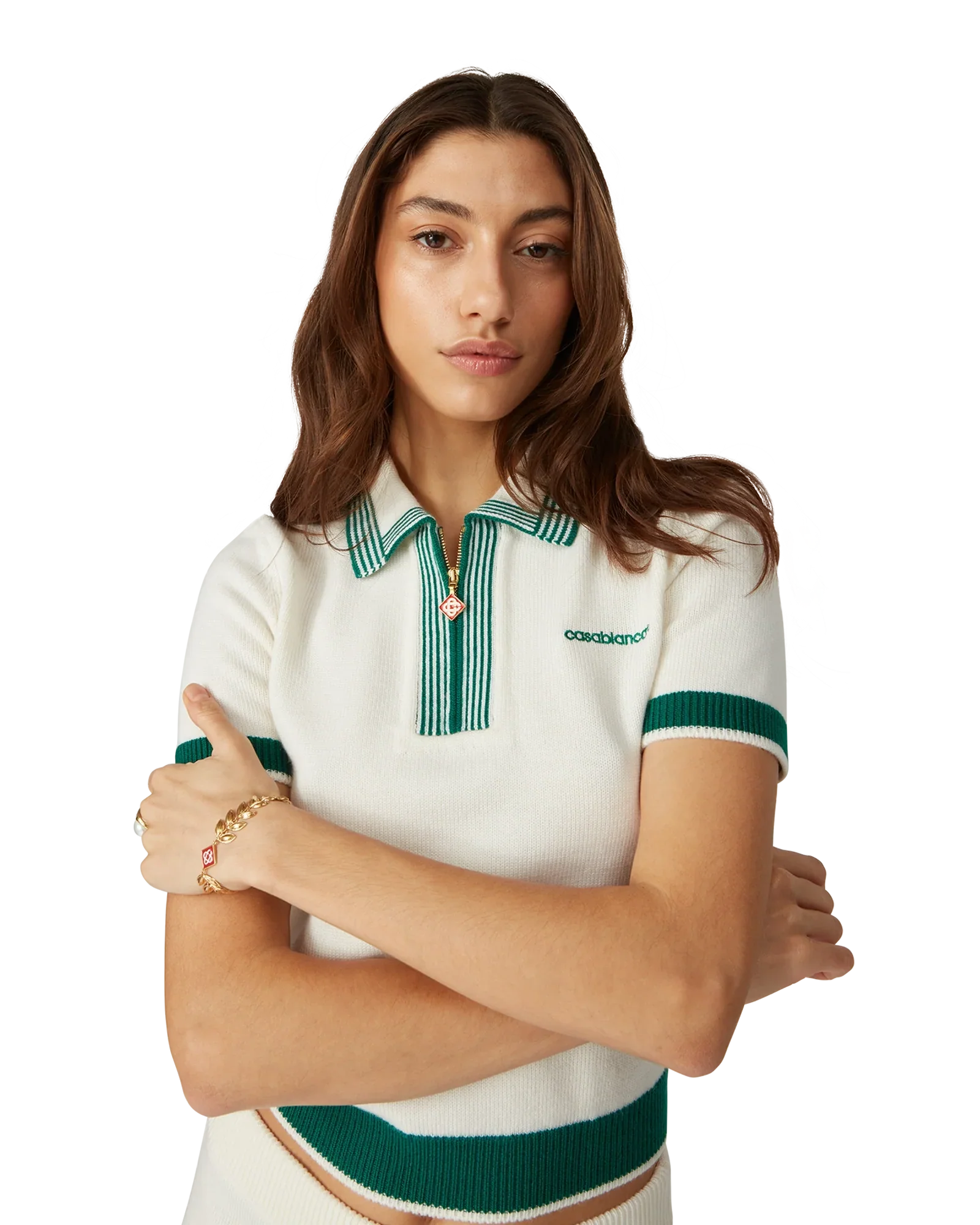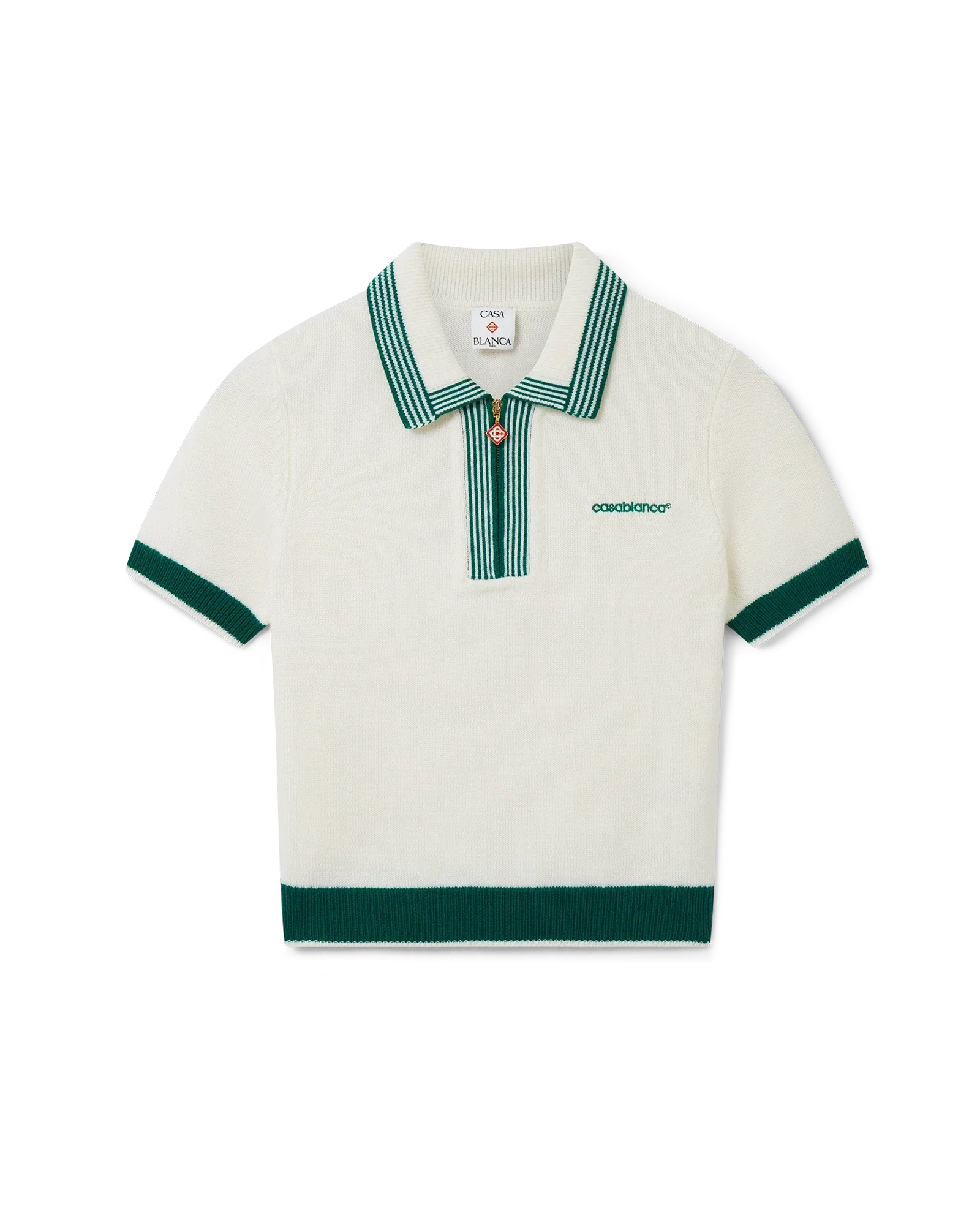 The knit tennis polo shirt is a classic design crafted from a merino wool fabric. Completed with contrast ribbed edge detail on the cuffs, hem, collar and placket, front zip closure, a rib collar and Casablanca logo.