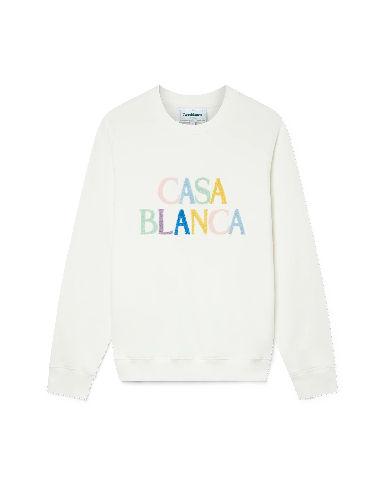 The stacked logo embroidered sweatshirt is the house's signature jersey style featuring a seasonal logo artwork on the chest. Crafted from an organic cotton fabric in off-white, the sweatpants are finished with a crew neck and long sleeves.